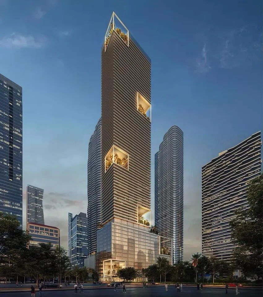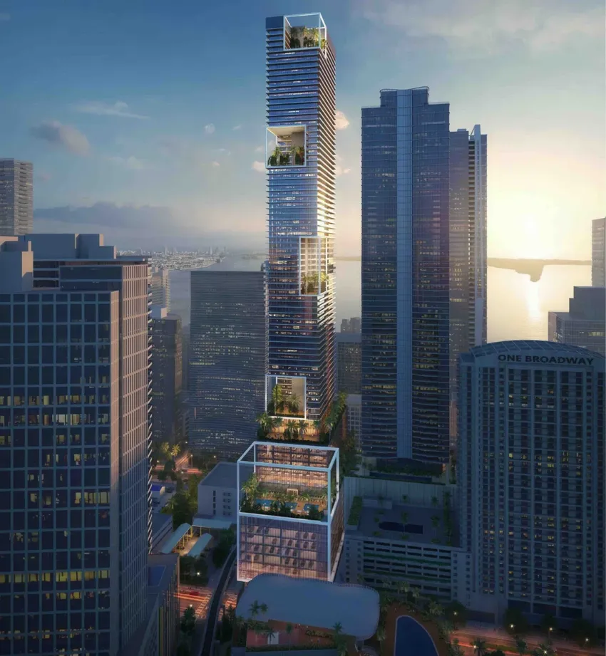 Башня высотой более 300 метров станет одной из самых высоких в городе и планирует войти в число архитектурных символов района Brickell. Футуристическая форма небоскрёба с динамичными линиями и стеклянным фасадом создаёт эффект движения и лёгкости.