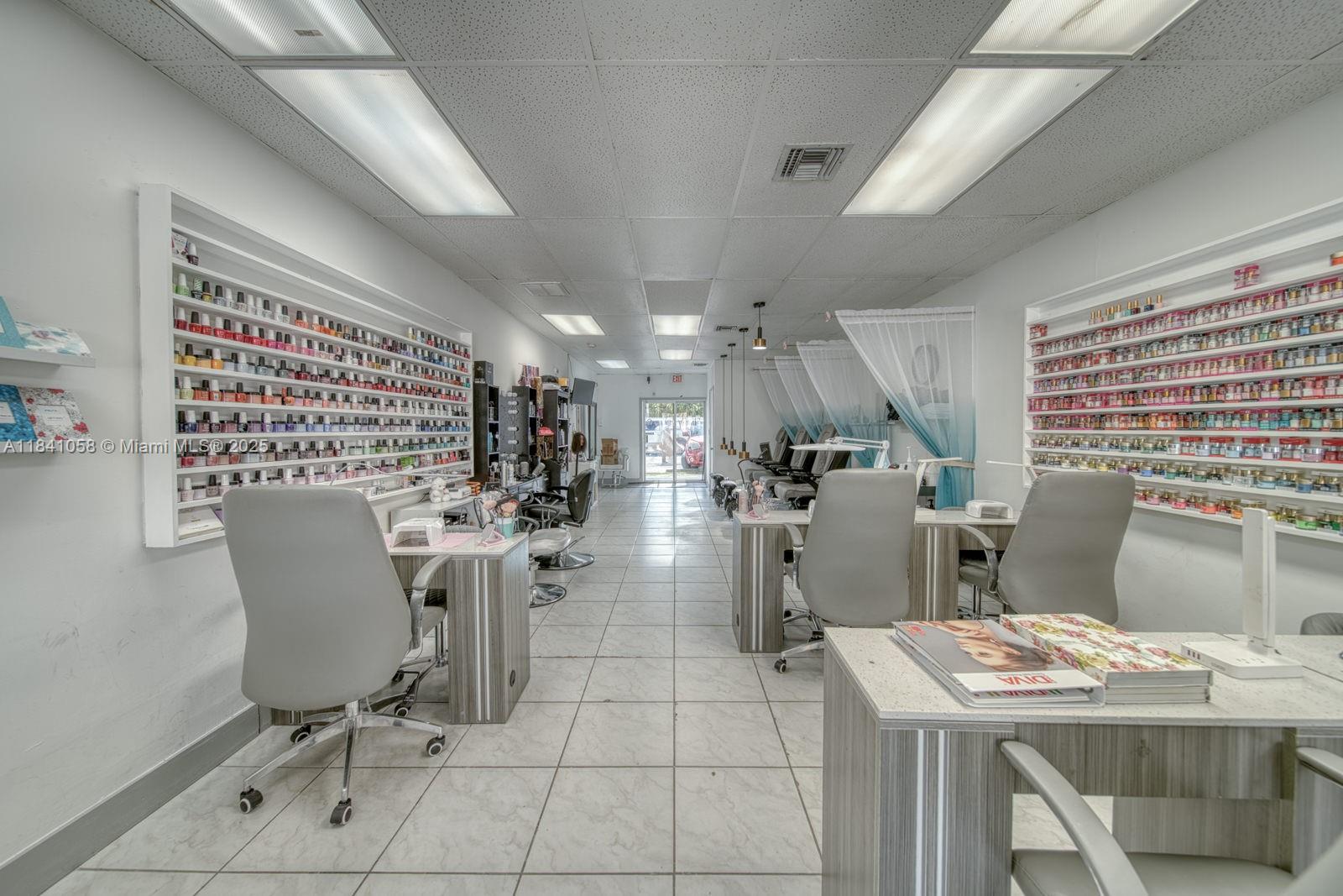 Established beauty salon in the heart of Hialeah, this well-maintained salon has built a loyal clientele and offers a full range of beauty services in a clean, modern setting. Affordable, all-inclusive rent: only $2,040/month, Welcoming lounge area with storage space, Spacious treatment room divided into two separate rentable spaces – ideal for additional income, 3 pedicure stations, 5 nail stations, 1 hair station, 1 wash station. The salon is fully equipped and currently in operation, offering a seamless transition for a new owner. This is a rare opportunity with low overhead and strong growth potential. Don’t miss this chance to own a thriving salon in one of Hialeah’s most desirable commercial locations.