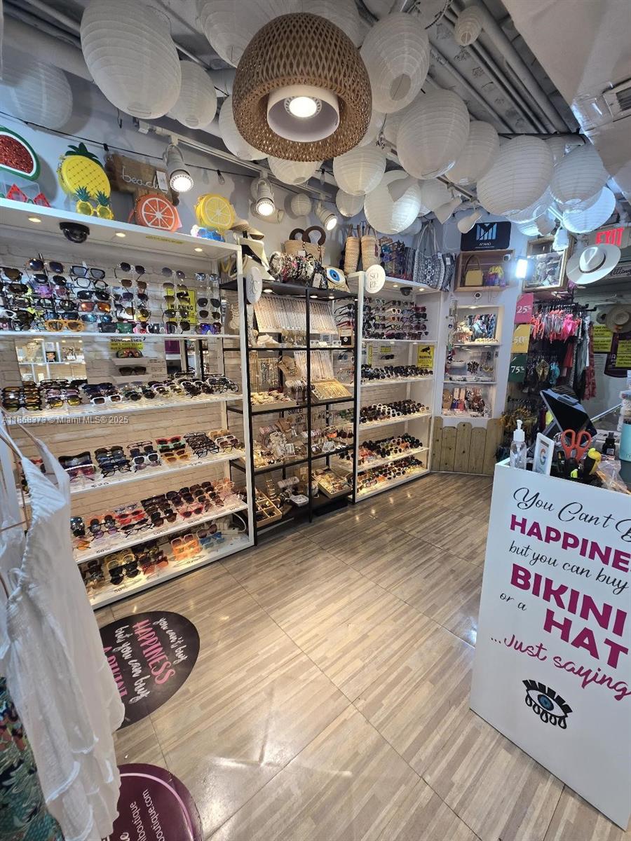 BEAUTIFUL BEACH SUPPLIES STORE TWO BLOCKS FROM THE BEACH AND WITH A TREMENDOUS LOCATION ON COLLINS AVE. PLEASANTLY FURNISHED AND WITH GREAT LIGHTING.WE HAVE BIKINIS, DRESSES, SUNGLASSES, TOWELS, AND MORE BEACH ACCESSORIES. MODERN DESIGNS, VIBRANT COLORS AND IRRESTIBLE PRICES. THE SELLER IS OPEN TO NEGOCIATE !!! DO NOT MISS THIS OPPORTUNITY!!!!!!