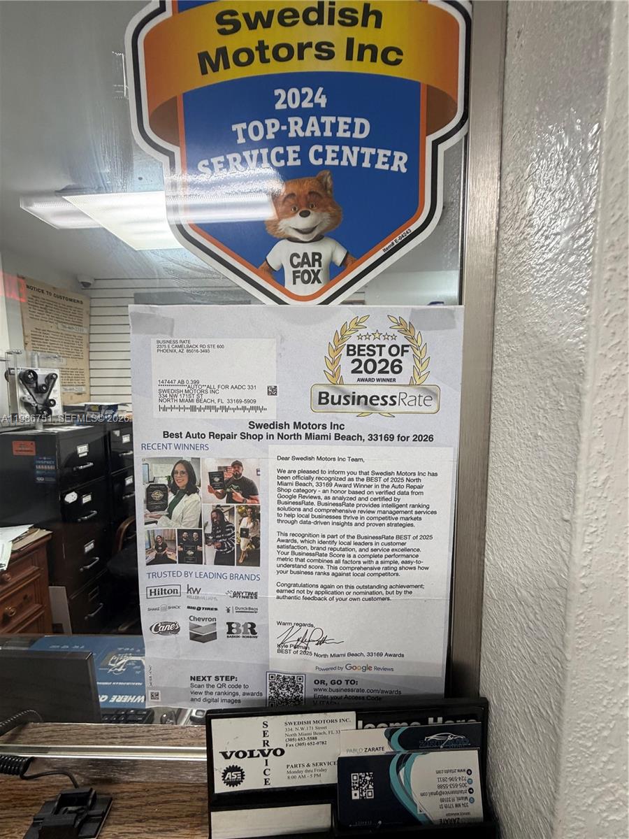 First time offering a well-established automotive repair business located near 826 expressway & turnpike entrance doing business since 1986. Great opportunity for an entrepreneur or experienced mechanic looking to own their own business. Sale includes 4 lifts, tire balancing machine, air compressor, and leasehold improvements. Office with central air. Two bathrooms. Approximately 2,500 sq ft, We are a licensed dealership