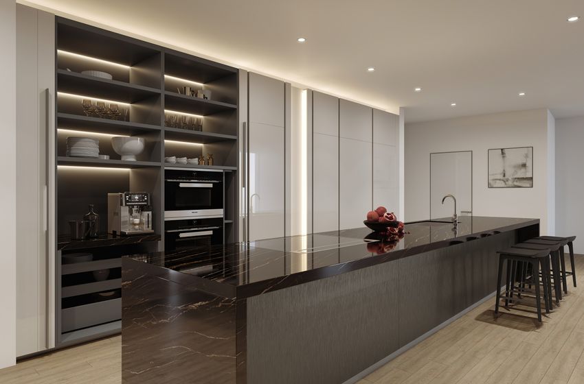 Элегантные и функциональные кухни с полным набором встраиваемой бытовой техники Miele, вместительными органайзерами и мраморными столешницами. Дизайн мебели от итальянского производителяMolteni, по индивидуальному заказу, выполнен из дерева и покрыт лаком..