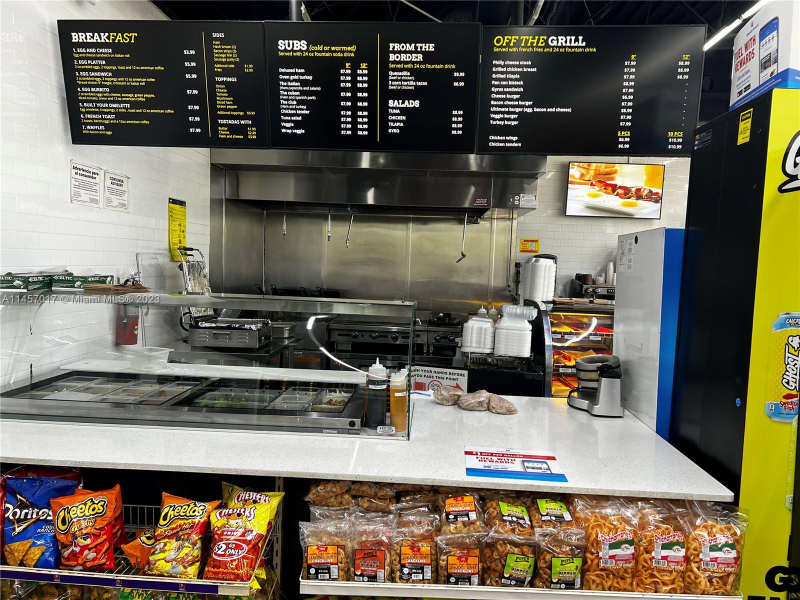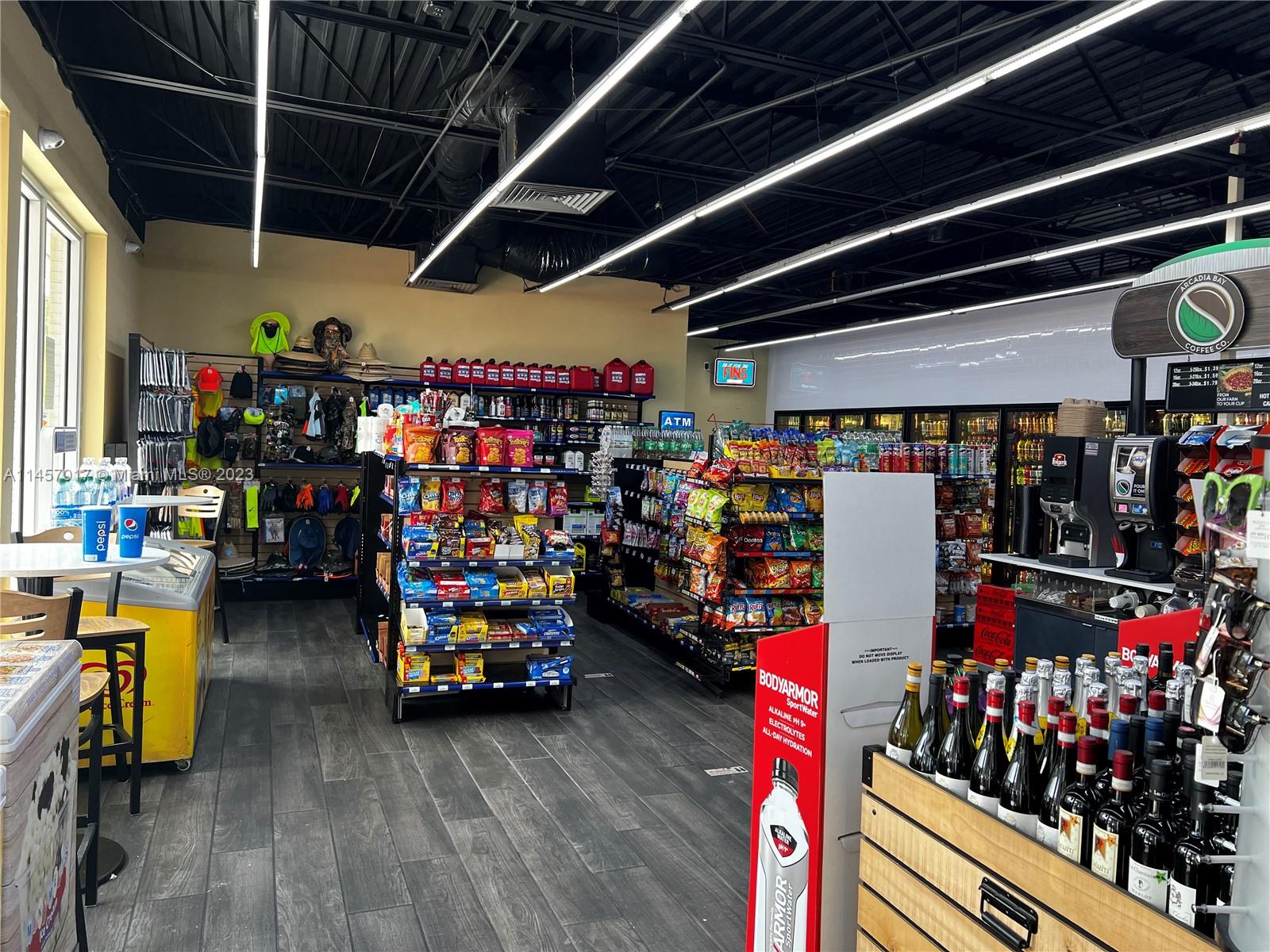 Gas station convenience store, cafeteria, car wash, ATM and lotto, beer & wine license, open 24 hour.
