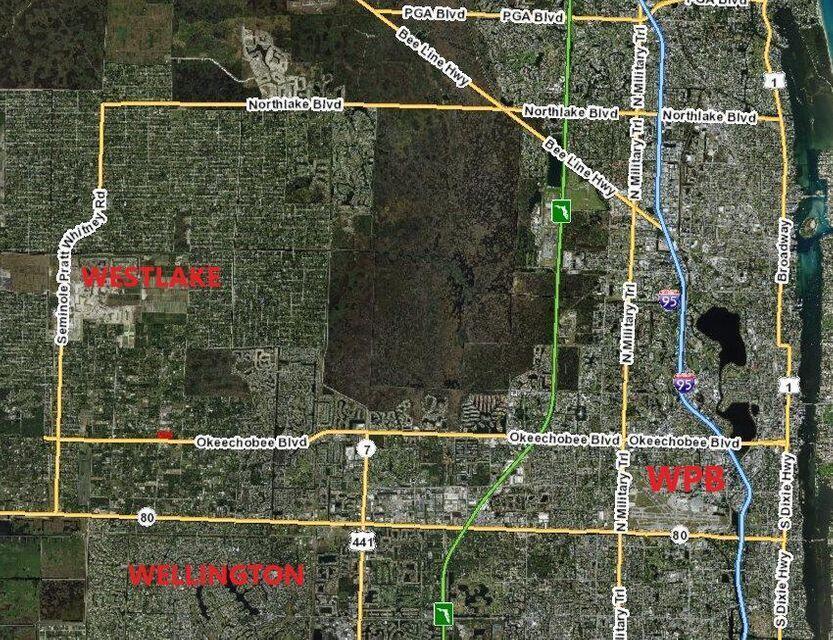 10 cleared acres on Prime corner location of Okeechobee Blvd & D Rd. Centrally located between West Palm Beach, Wellington and Westlake in Palm Beach County. One of the last few large parcels available on Okeechobee Blvd. D Rd leads directly to Southern Blvd. Irrigation System in place for Plant Nursery. Ag/Res zoning allows residences, caretakers qtrs., barns, wholesale nurseries with landscaping operations to serve customers, covered arenas, RV's and more! Agritourism events permitted on Bona Fide Ag classified property.Nursery Stock does not convey. Minutes to turnpike, Airport, fine dining, equestrian events and beaches. Adjacent property available for a total of aprx 20 acres.All measurements & outlines are approximate.Shown by appointment.