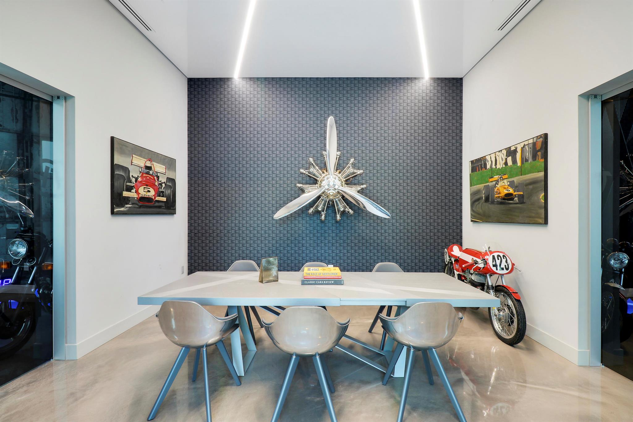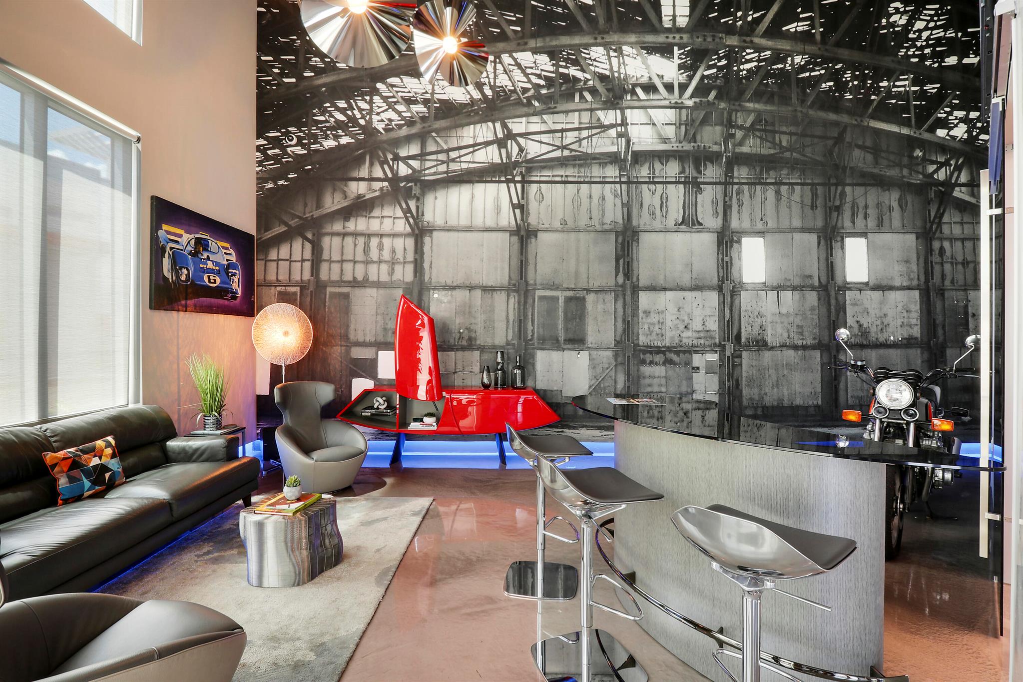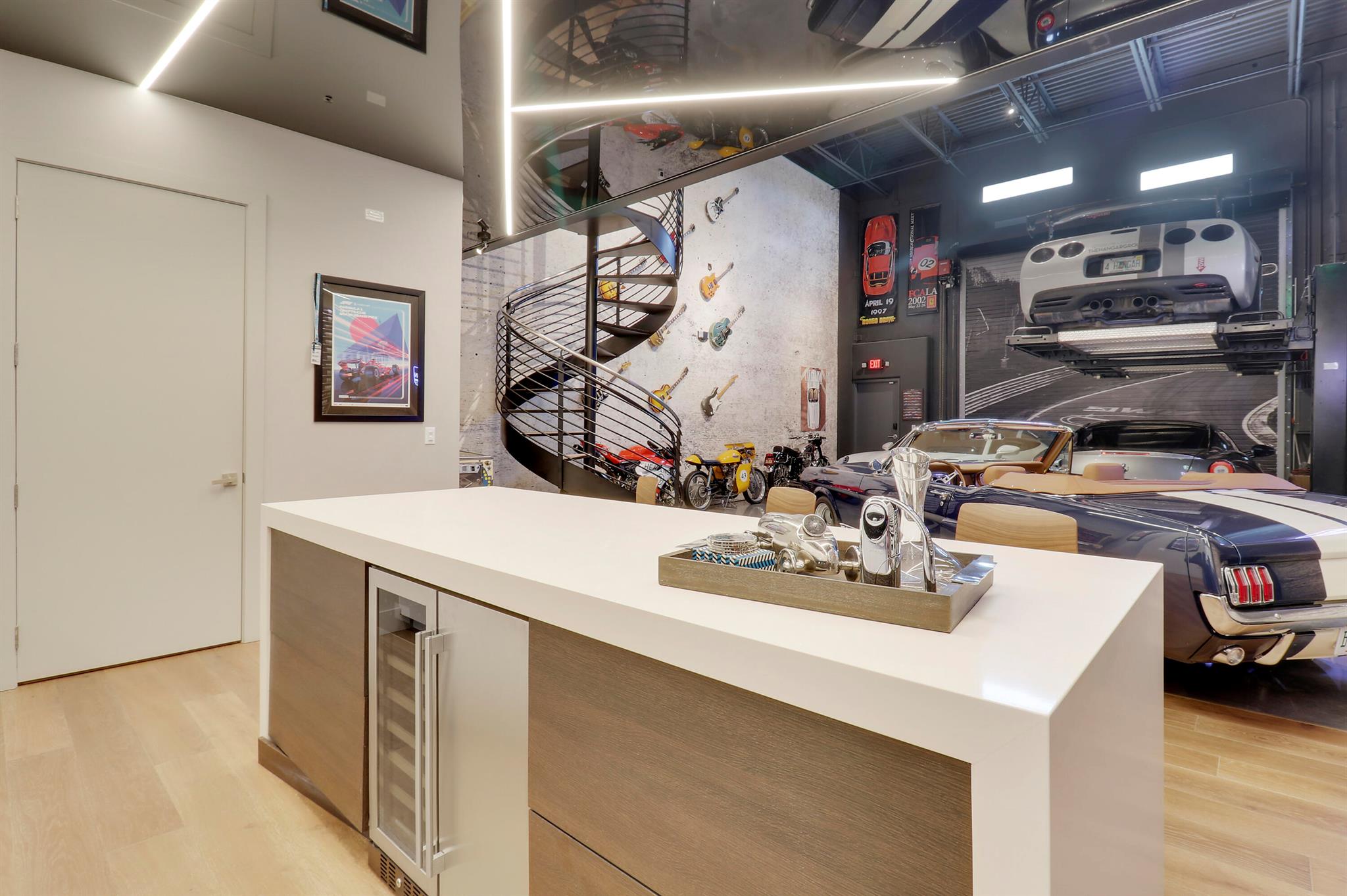 Rarely and virtually never available, this unit offered is the developers model unit! Without question the best location within the development. This is the first unit on the main runway and also directly adjacent from the owners lounge & club house. The developer spared no expense in the build out of the model unit and for the first time ever is now available for resale! The Hangar is the premier garage condominium development offering unparalleled privacy and security, along with amenities akin to that of a private members club. A new class of real estate, each space is offered to owners as a blank canvas in which to store, display and enjoy their most prized collectible assets, with unlimited customization and design possibilities to carry out creating their ultimate vision