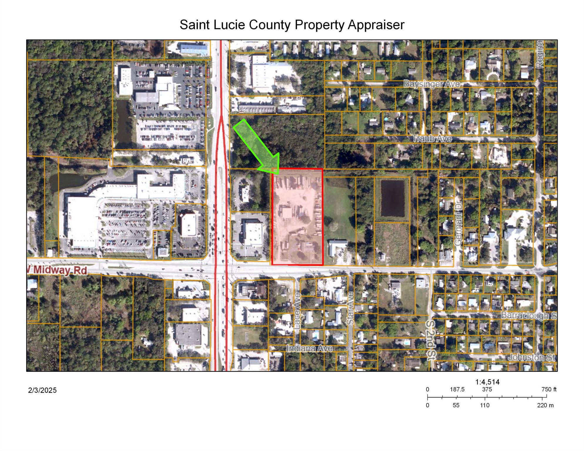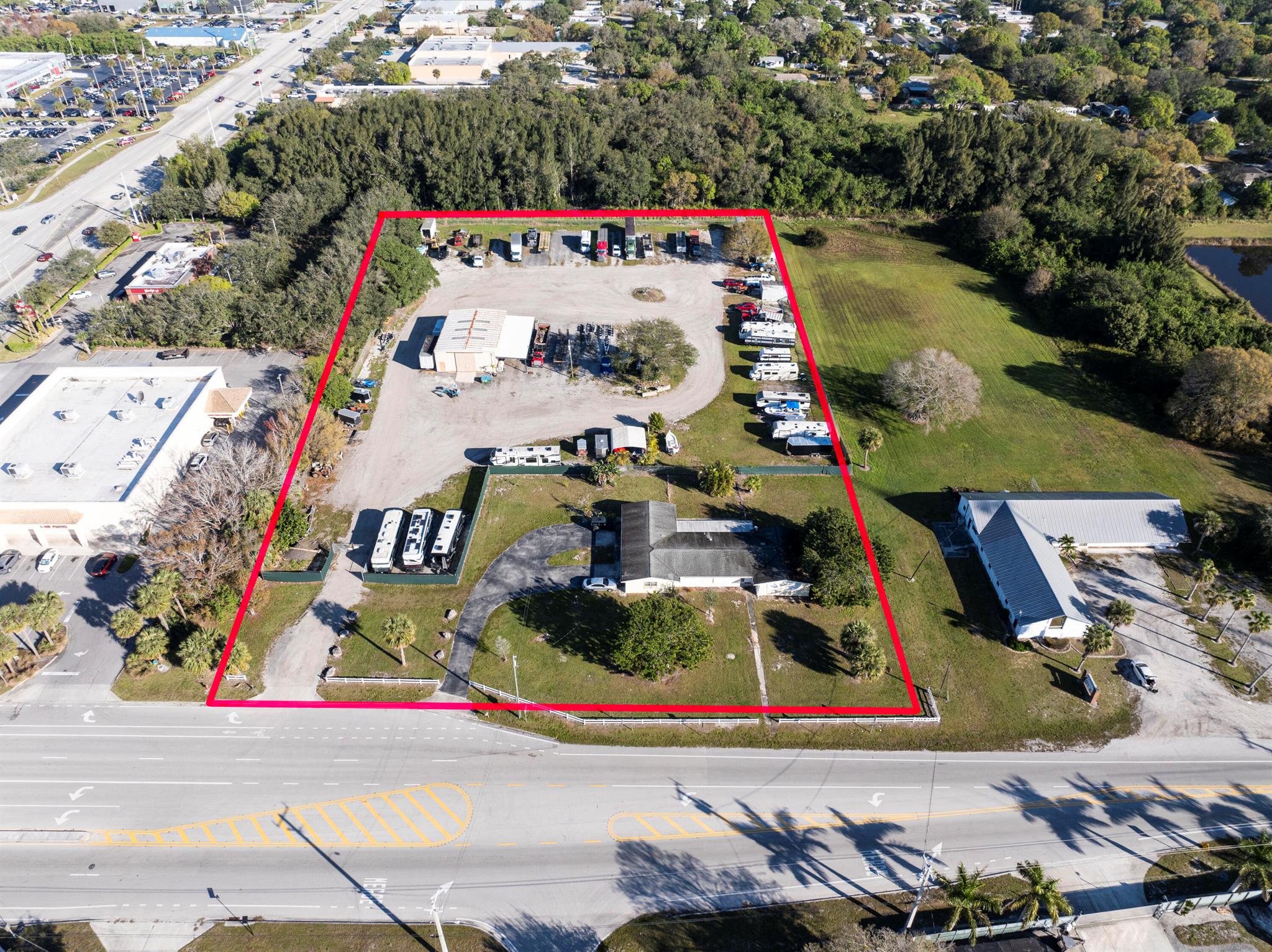 Prime commercial property just off US #1. Located between Port St Lucie and Fort Pierce in very desirable White City.The property adjoins a 4.75 undeveloped property fronting US #1. Combining the 2 sites total 9 acres with frontage on US #1 and Midway Rd.This property has 315 feet on Midway Rd and is the 2nd parcel east of US #1. The property is currently developed with a 3,000 sq ft metal shop building with 14' x 14' door + 2 large airplane hangar style doors, built 1983 with water & electric to the building and a CBS home with over 3,800 total sq feet(3 brs, 2.5 baths with a 2.5 car garage). Both buildings are on well & septic, however a 12 inch water main is in front of the property(see map in documents tab). Each building is on a separate electric meter.