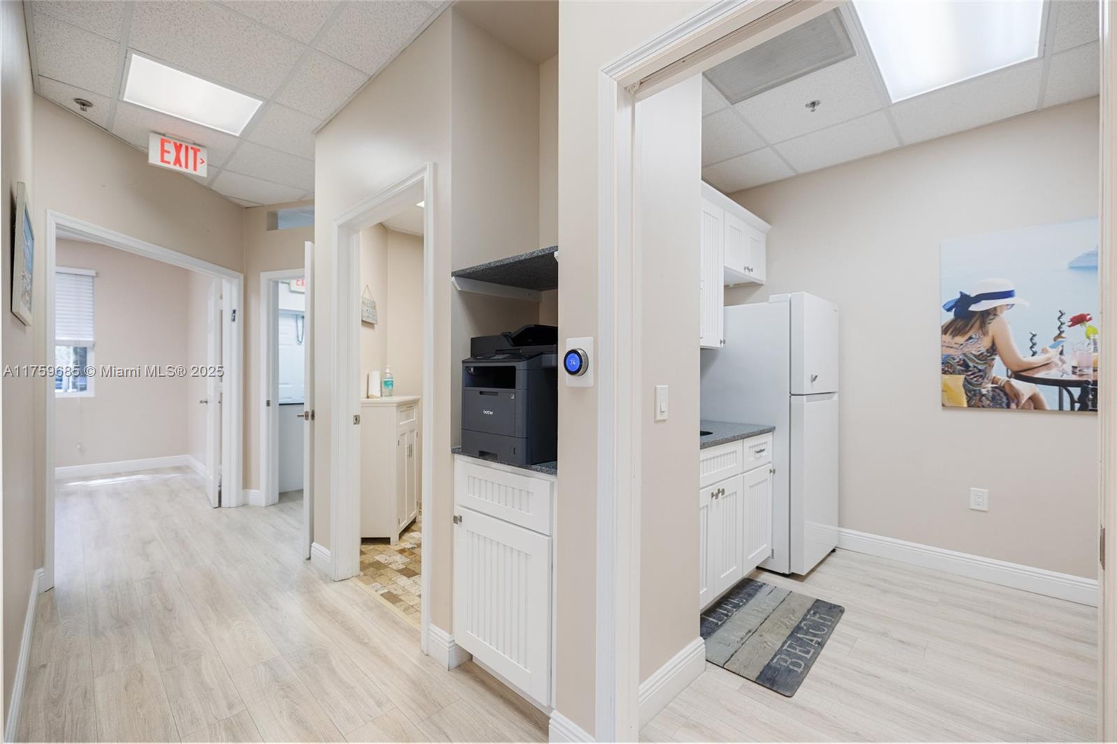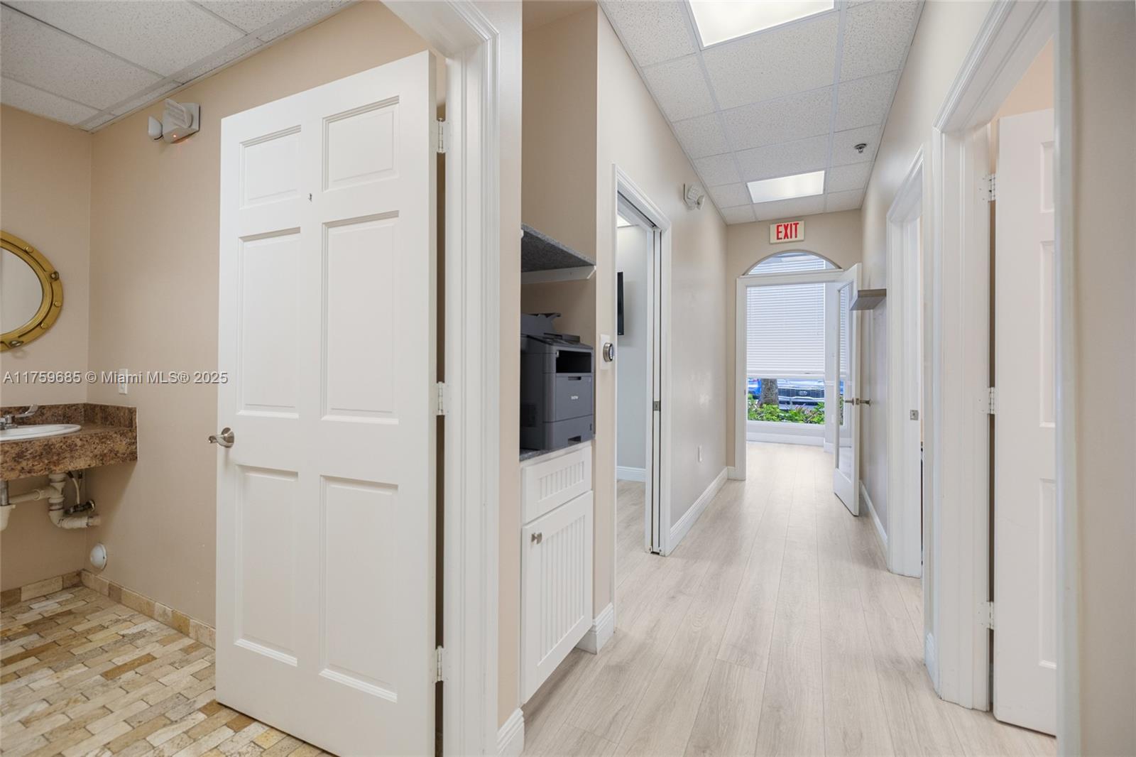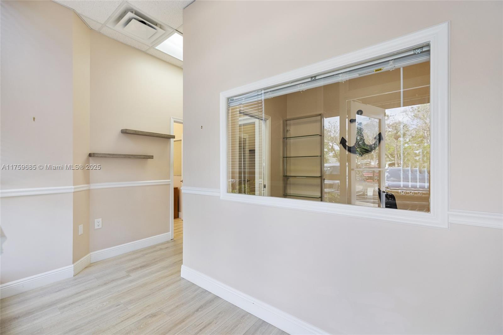 Turnkey Corner Office Condo in Plantation! This 964 sq. ft. professional office is move-in ready and includes furniture in the sale (excluding artwork). The well-designed layout features four private offices, a welcoming reception area, a kitchenette, a private restroom, and a storage room. Elegant wood flooring and large impact windows create a bright, professional atmosphere with storm protection. Additional highlights include a dedicated A/C system, sprinkler system, and a newly replaced roof. Perfect for medical, legal, financial, or professional services, this prime corner unit is located in a thriving business district with ample parking and easy access to major roadways. Don’t miss this rare opportunity to own a fully furnished office in a sought-after commercial area!
