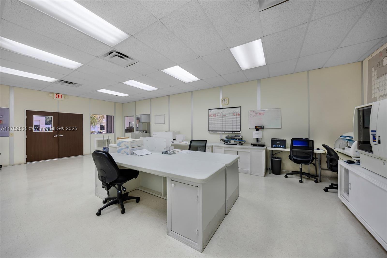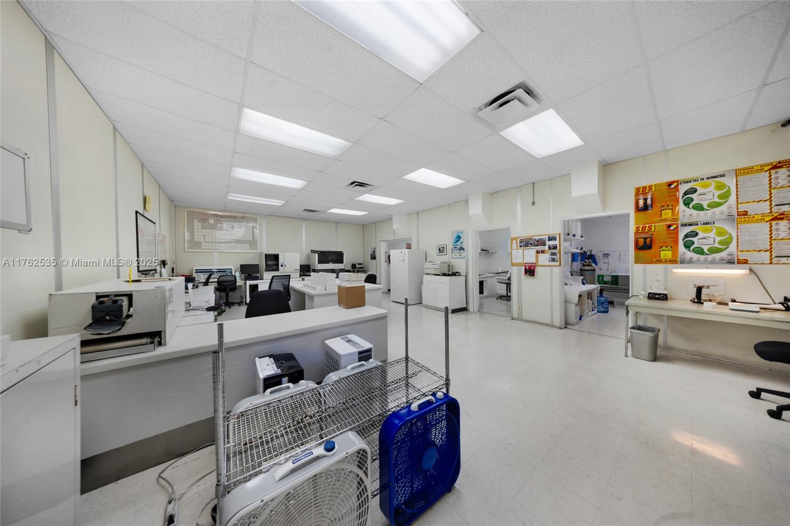 State of the art warehouse facility for sale! This rare opportunity offers 5,000 SQFT of well equipped space in a prime industrial park just two miles from Miami International Airport. The property features climate controlled AC, dedicated cold storage and a fully functional lab setup. Additional highlights include 19 FT clear height, one recessed dock, one ramp and a 14'H x 20'W motorized roll-up door for seamless logistics. The modern showroom, second floor offices, conference room and lounge-kitchen area enhance functionality for a wide range of business needs. With six assigned parking spaces and room for up to 10 cars, plus easy access to major highways, this property is perfect for businesses seeking efficiency, security and convenience.