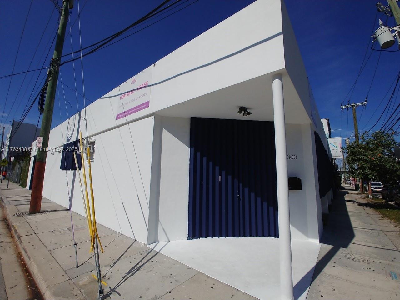 FOR SALE RENOVATED CORNER BUILDING IN THE HEART OF MIDTOWN, MIAMI WYNWOOD ART DISTRICT,GALLERY, RETAIL, SHOWROOM,. FANTASTIC EXPOSURE, 13-9"CEILINGS WITH CONCRETE T-BEAMS, SUBDIVIDED INTO 2 GALLERY STYLE SPACES, LARGE WINDOWS TO STREET, HURRICANE SHUTTERS, LARGE REAR YARD FOR PARKING/SCULPTURE GARDEN, 2 OVERHEAD DOORS, CONCRETE FLOORS THROUGHOUT.