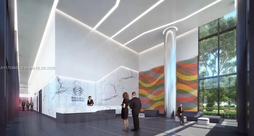 Very nice large office with conference room and two private window offices with panoramic views and large open conference room in Forum Aventura that is a spectacular office condominium close to Aventura Mall. It's modern and elegant and developed with business needs of today in mind. One of a few buildings in Aventura and South Florida where your company can own a commercial office with an architecture and interior design from the renowned Arquitectonica in a highly sought after location in the commercial district of Aventura. 14-foot ceilings, Terrace on the roof Sky Lounge, Space for meetings in the fresh air with panoramic views of city, Conference hall for meetings, coffee area, games and so much more. Assigned parking in adjacent garage. This will not last!