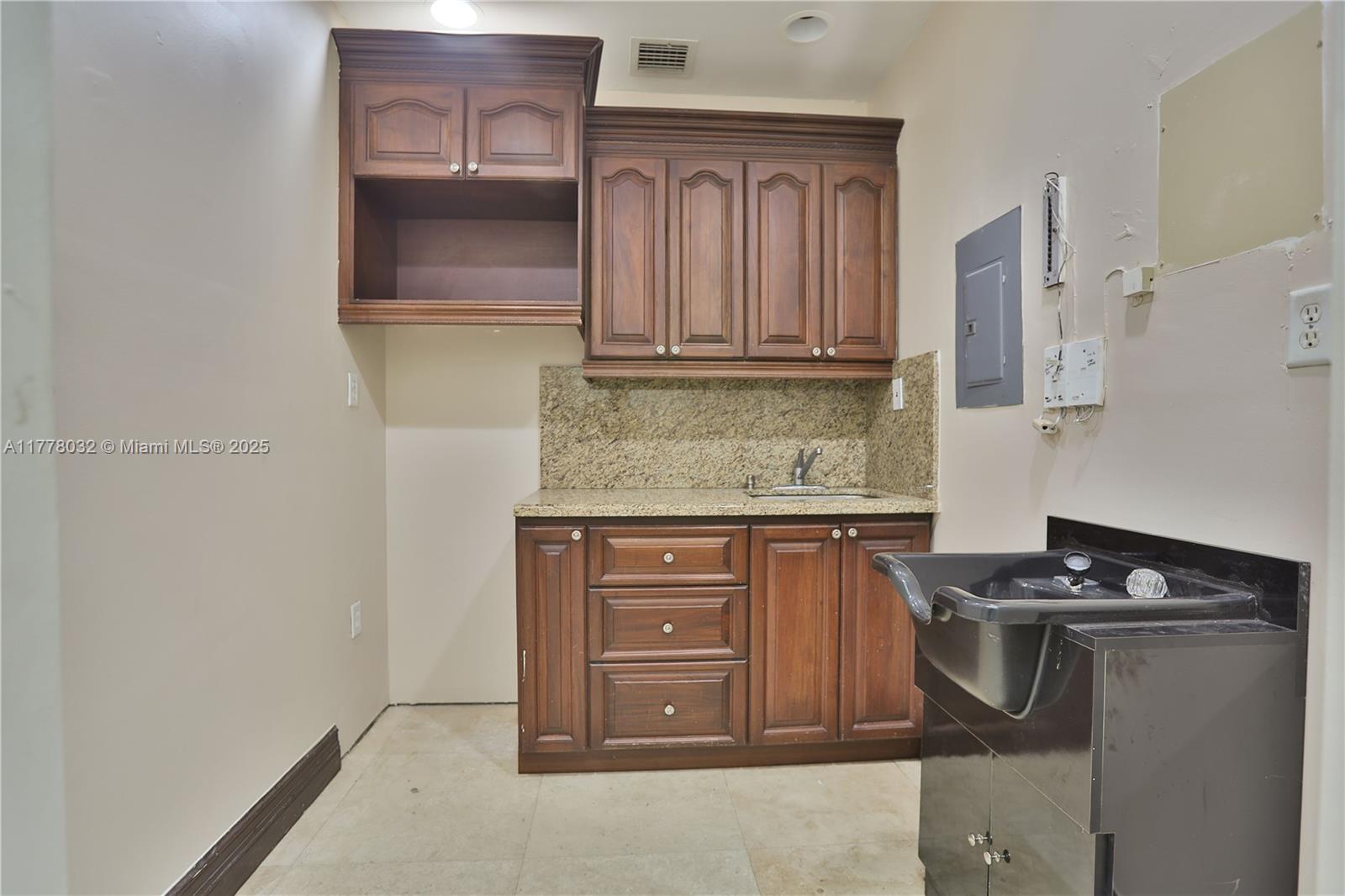 Look no further for an ideal office/warehouse with all the amenities you need! 1,516 SqFt of blended office and open warehouse space, perfect for any business welcoming clients in the reception area while securely storing inventory. Enjoy high ceilings and a large bay roll-up door, with half of the warehouse under A/C. The property features a reception area, bathroom with shower, a kitchen, and two separate offices finished with granite countertops and oak cabinetry. Plus, there’s a mezzanine and loft area for extra storage