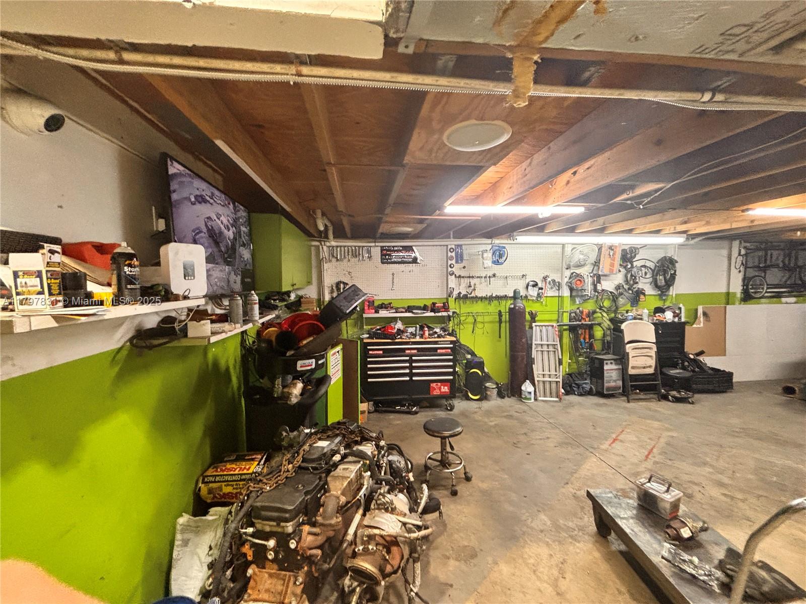 Versatile Industrial Warehouse in Opa-Locka! This well-maintained warehouse features 1,160 sq. ft. of ground-level space plus an additional 500 sq. ft. second-floor unit set up as a 2-bed, 1-bath apartment with laminate wood floors, a kitchen, and laundry area—ideal for office use or on-site living. The warehouse includes a 5-ton A/C system, electric 20-ft roll-up door, half bathroom, and a security camera system. HOA is just $197/month and covers water, trash, exterior maintenance, and roof maintenance. A smart choice for business owners or investors seeking a flexible space in a thriving location.