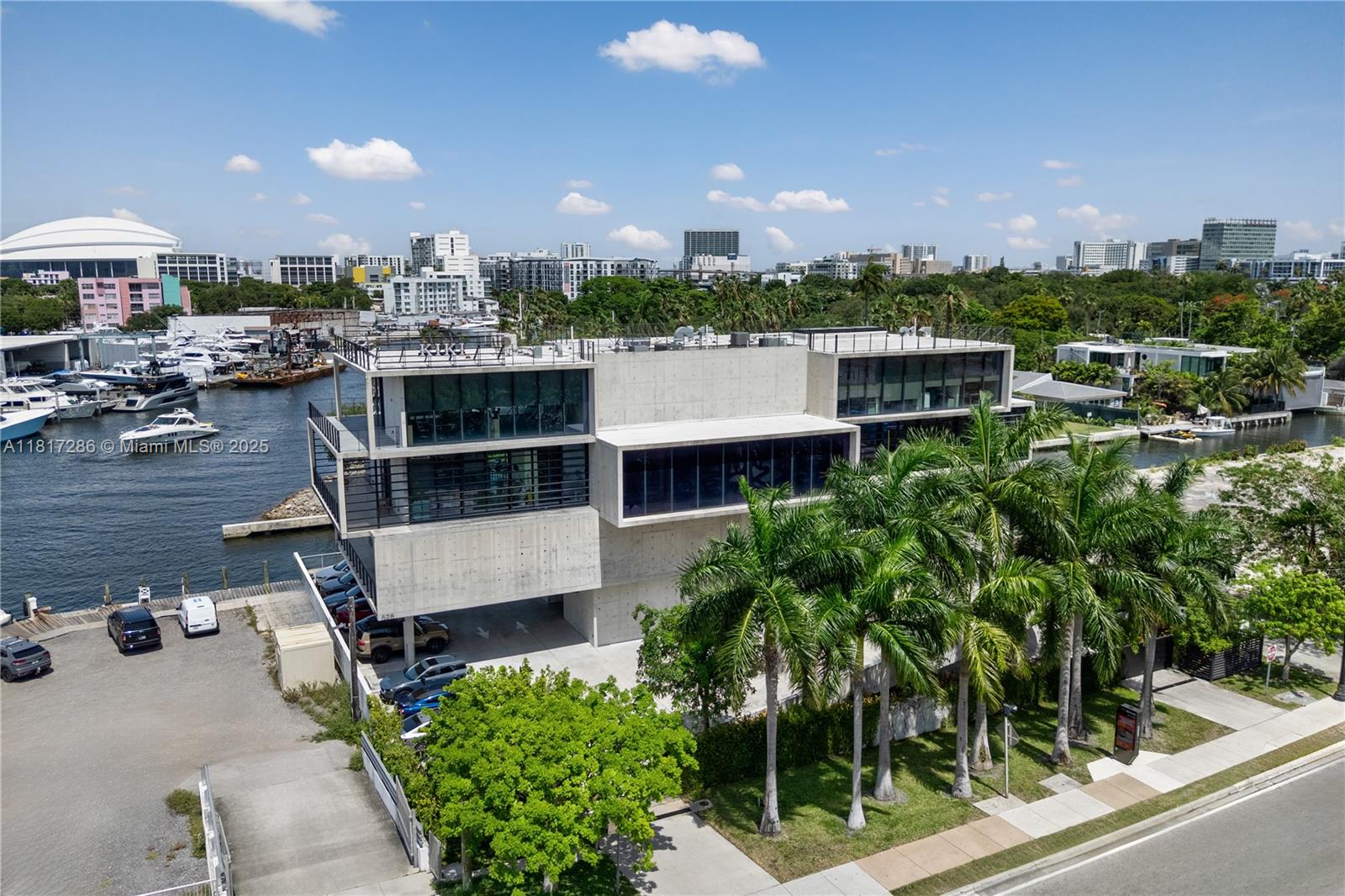 A rare architectural gem on the riverfront — this striking four-story commercial building designed by world-renowned architect Chad Oppenheim. Completed in 2016, it blends form and function, offering 15,784 sq ft of dynamic interior space ideal for creative offices, showrooms, hospitality, or a flagship HQ. Set on a prime waterfront parcel, this gated property includes two floors of secure parking, two elevators and dock space perfect for marine access, executive arrivals, or unique client experiences. Each level offers open layouts and floor-to-ceiling windows framing panoramic river views. Expansive terraces provide ideal spaces for entertaining, meetings, team gatherings, or peaceful breaks in the open air. This property offers not just a place to work—but a place to stand apart.