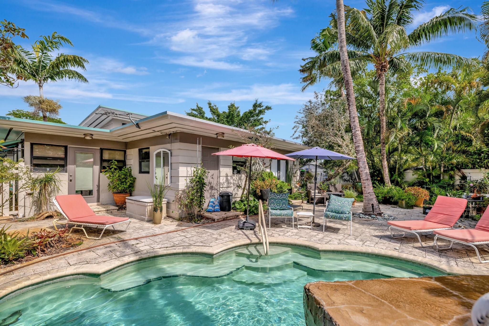 ANOTHER PRICE IMPROVEMENT – TIME TO CHECK IT OUT! Rare opportunity to own an exceptional duplex with two spacious units: a 2BD/1BA and a 1BD/1.5BA, with walk- in closet, each approx. 1,200 sq. ft. Features include private entrances, modern kitchens with stainless steel appliances, in each unit full wash/dryer, impact windows/doors, vaulted ceilings, and 5 parking spaces. Enjoy a gated setting with lush landscaping, pool, and fenced patio. Perfect to live in one and rent the other, generate steady income with short- or long-term rentals, or redevelop into luxury townhomes. Prime location near Wilton Drive, Las Olas, shopping, and beaches. Designed by Robert Hansen, a pioneer of Fort Lauderdale modernism. Note the vaulted ceilings! CALL TODAY for a private tour!