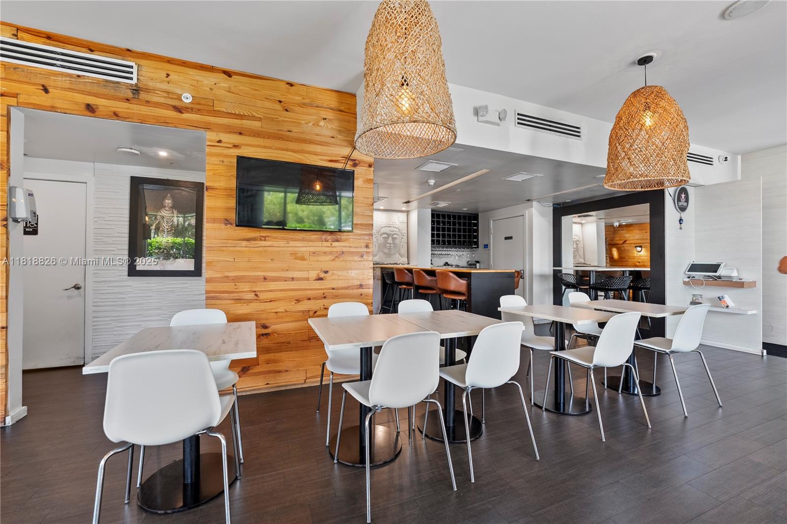 This prime 850 sq. ft. unit presents a rare business and investment opportunity in the heart of Brickell. Located on the first floor, the space offers tranquil water views upon exit and is currently leased to a restaurant tenant through December 2025, providing immediate rental income.