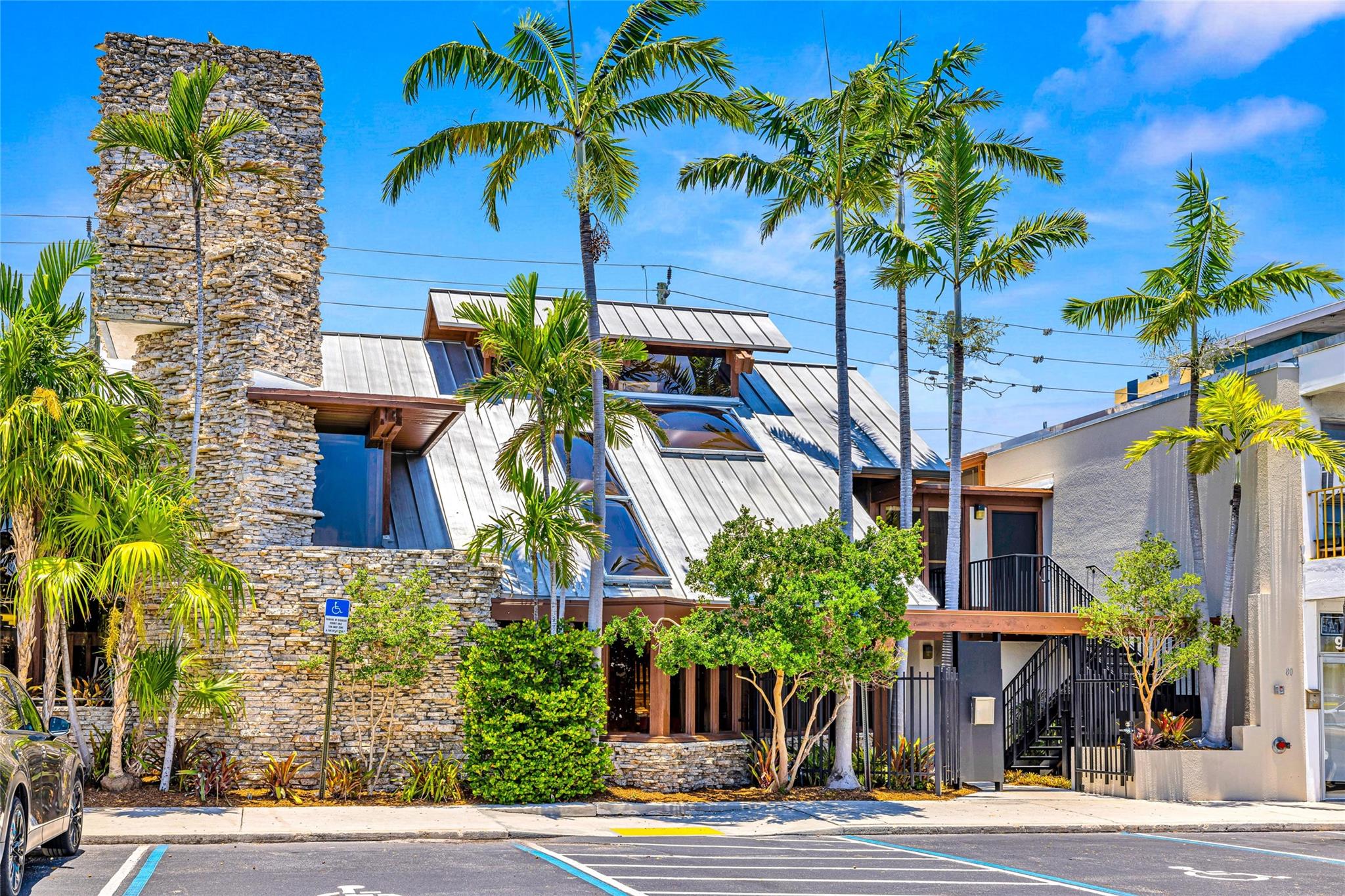 A signature building designed by architect Dan Duckham suitable for an owner-user & ideal for firms in architecture, engineering, construction, wellness, creative fields, executive & professional office or retail use. The structure radiates organic warmth with earthy sophistication, vaulted sky-lit ceilings & exposed beams. 4,557 SF of interior workspace currently configured as 10 workstations, reception area & meeting atrium on the 1st floor, with 7 workstations upstairs, loft meeting area & the founder’s office. Situated at the intersection of East Oakland Park Blvd & N Federal Hwy with over 80,000 vehicles/daily (AADT), this landmark provides exceptional visibility and minutes to Downtown, I-95, Beaches & neighborhoods known for Walkability, Water Access & the South Florida Lifestyle.