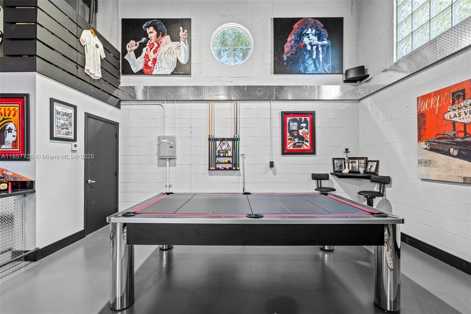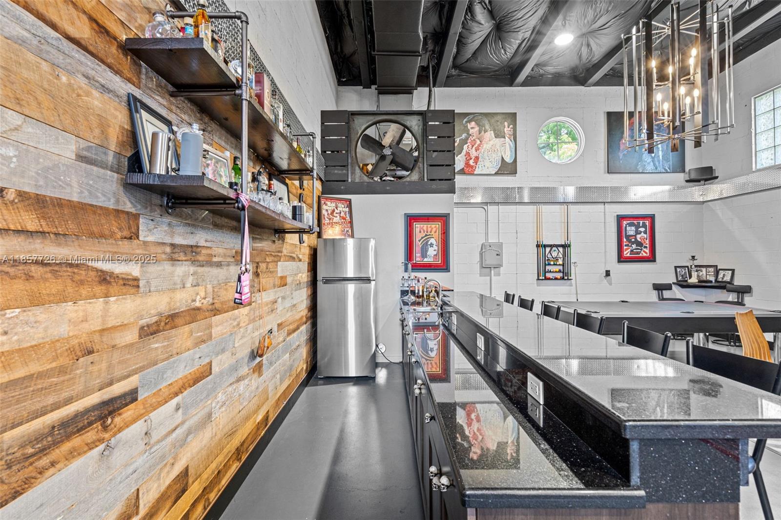 Turnkey and fully furnished, this converted warehouse offers a one-of-a-kind private space with endless creative possibilities. Featuring insulated 18–20' ceilings with custom chandeliers, LED lighting, a stereo system, and full air conditioning, this property blends industrial scale with luxury finishes. The kitchenette boasts granite countertops, a bar setup, and seating areas. Enjoy two lounge zones, a pool table, and a classic Pac-Man game. Perfect for private events, podcast studios, artist storage, or creative work—not for industrial or active business use. Located in a secure, gated community with no industrial activity, offering privacy, exclusivity, and style in one package. All information is believed to be accurate but is not warranted. Buyers to conduct their own due diligence.