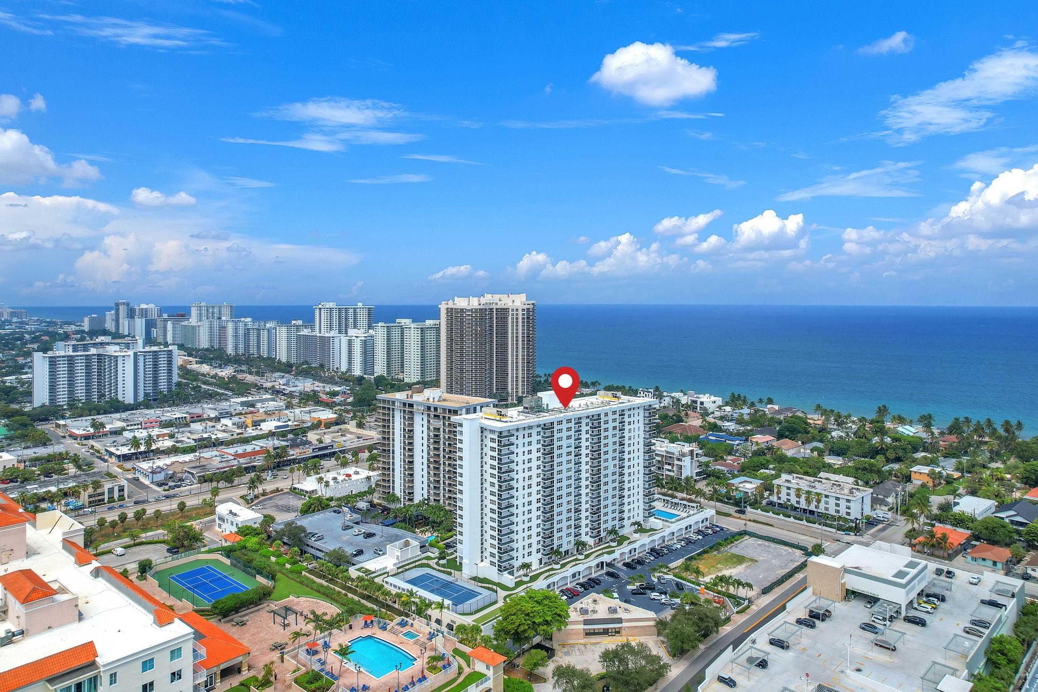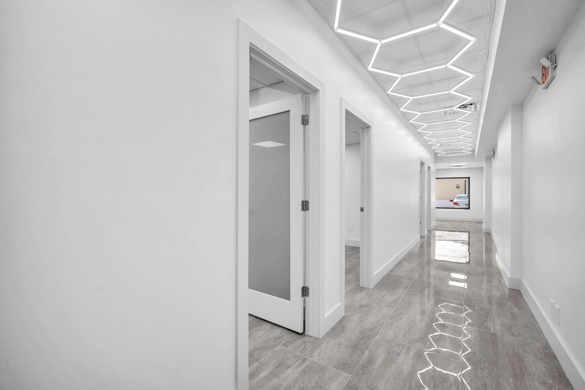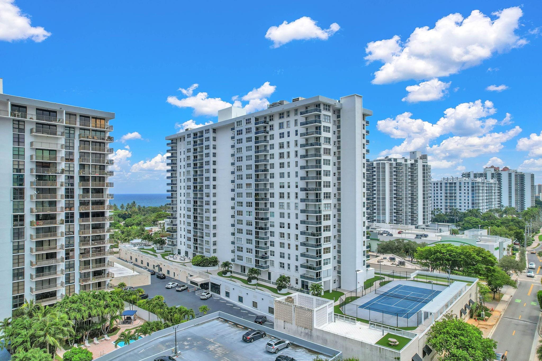 This 1,000-square-foot office space is situated on the first floor of a mixed-use commercial and residential building, perfectly positioned along a vibrant, beachside boulevard. Its prime location offers both convenience and a professional atmosphere. The office features four completely renovated offices, hurricane impact doors and windows, cable and internet included in HOA, two covered parking spaces, as well as abundant guest parking. This 18 story, 199 unit building is steps away from the Atlantic ocean.
