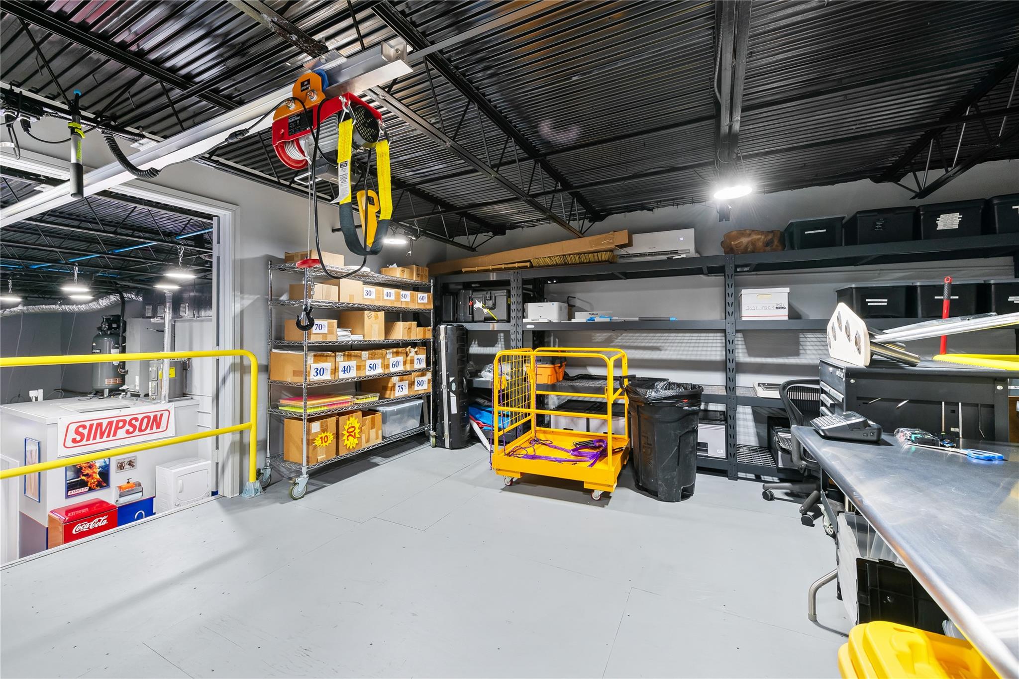 Ideally located in North Broward, just minutes from the coast, this luxury automotive and storage warehouse is the perfect mancave. Enjoy convenient access to Broward’s prime areas while storing your high-end toys. The garage boasts a beautiful metallic epoxy floor, two separate new AC units, an air compressor with full piping, plastered walls, 220V outlets, new LED lighting, impact windows, a new steel door, and a 10x12 garage door with a new power opener. It can accommodate 5+ cars, with ceiling clearance for double or triple car lifts. The remodeled office and bathroom feature high-end finishes. The mezzanine provides an additional 400 sq. ft. of storage or living/entertainment space, accessible via stairs and a hoist elevator, making this space both functional and luxurious.
