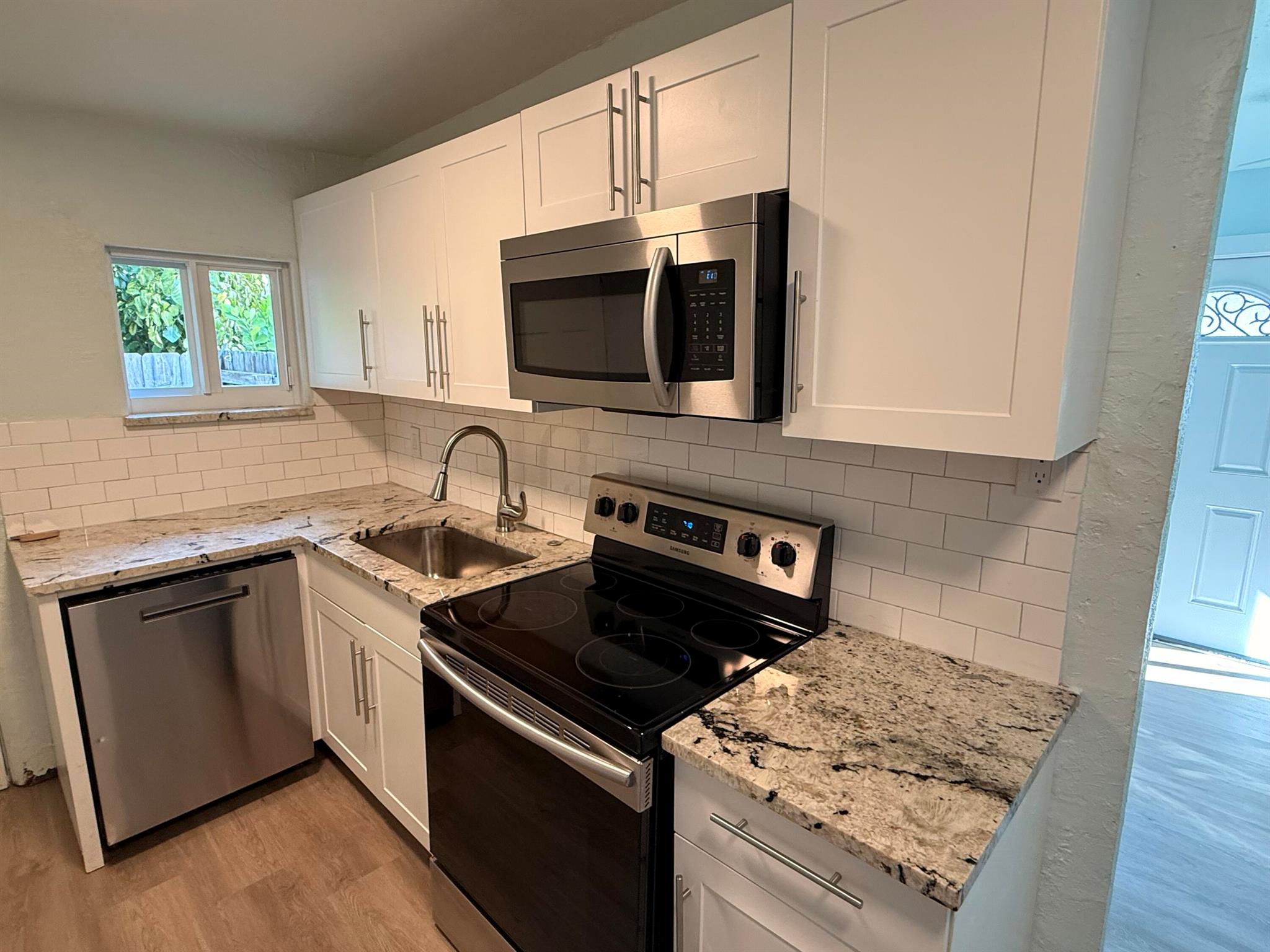 CHARMING OLD SPANISH STYLE DUPLEX IN COLONIAL ESTATES, JUST A SHORT DRIVE FROM DOWN TOWN WEST PALM BEACH AND PALM BEACH ISLAND. THIS COMPLETELY RECENTLY REMODELLED DUPLEX IS READY FOR OCCUPANCY. MAIN SIDE IS A 2 BEDROOM AND 1 BATH WITH NICE LIVING AREA. BACK UNIT IS A 1 BED & 1 BATH. BOTH UNITS HAVE CENTRAL A/C UNITS. ROOF WAS JUST RESEALED WITH A 10 YEAR WARRANTY COMMERCIAL GRADE SEALER. ALL NEW IMPACT WINDOWS. BOTH UNITS HAVE WHITE SHAKER STYLE KITCHENS WITH GRANITE COUNTER TOPS AND STAINLESS STEEL APPLIANCES. ALL NEW FLOORING THROUGH OUT. NEW BATHS, PLUMBING, TRIM, INTERIOR DOORS, BASEBOARDS AND UPDATED ELECTRICAL. FRONT AND BACK YARD NEW SOD INSTALLED THIS WEEK. BACK YEARD COMPLETELY FENCED IN. TWO STORAGE SHEDS. READY FOR NEW OCCUPANTS.