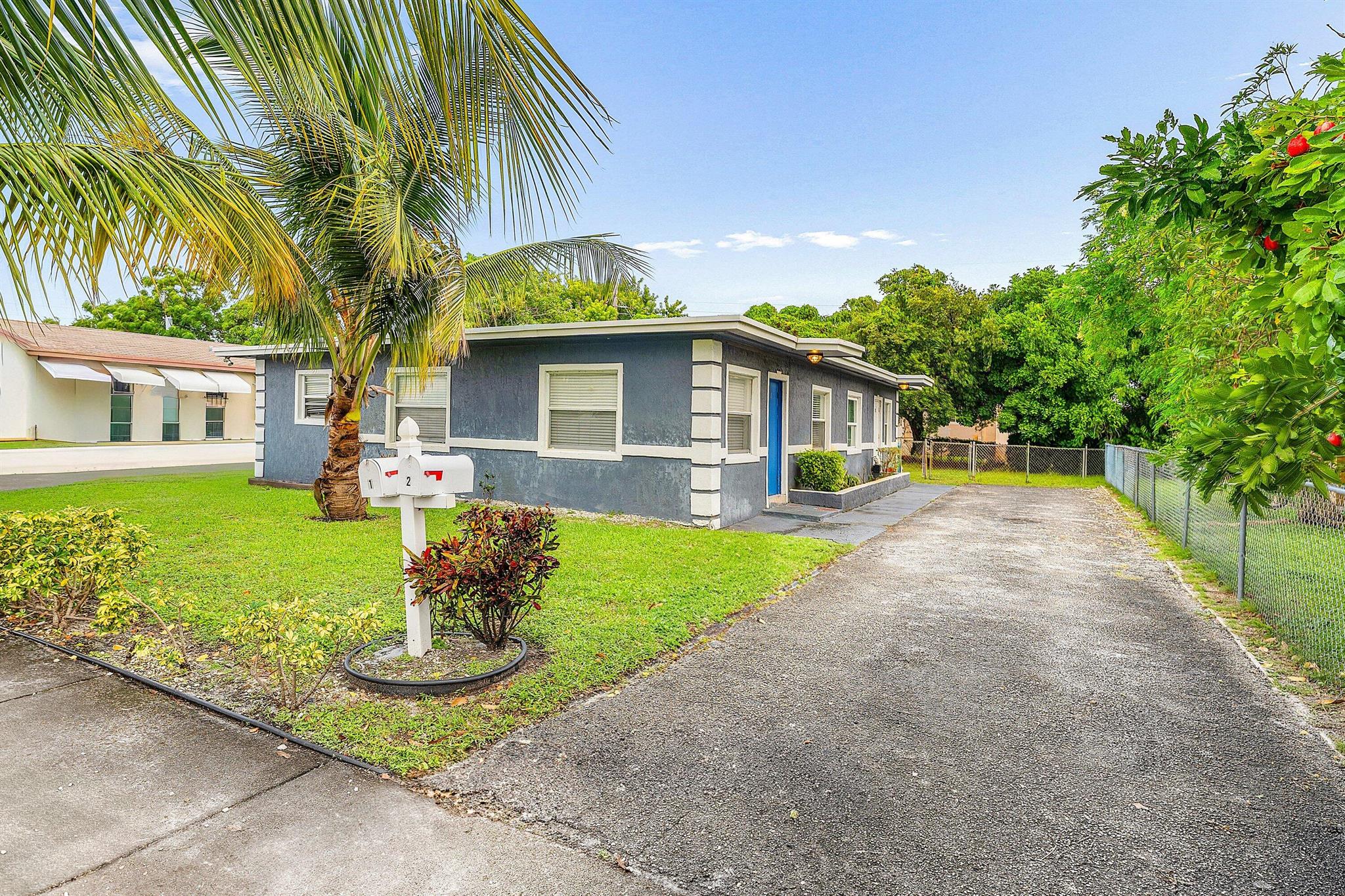 Excellent investment opportunity located just minutes from the Intracoastal and downtown, offering strong rental potential and long-term value. This beautifully updated duplex features two fully remodeled units, each with its own driveway, laundry, and separate utility meters, making it an ideal setup for investors or owner-occupants seeking reliable income with minimal maintenance.Unit 1 is a spacious two-bedroom, one-bath residence that has been tastefully updated throughout. The interior features wood-look vinyl flooring, a decorative tongue-and-groove wood ceiling, updated fixtures, and an abundance of natural light. The kitchen comes equipped with solid wood shaker cabinetry, ceramic tile countertops, a brick backsplash, and stainless steel appliances. The master bedroom