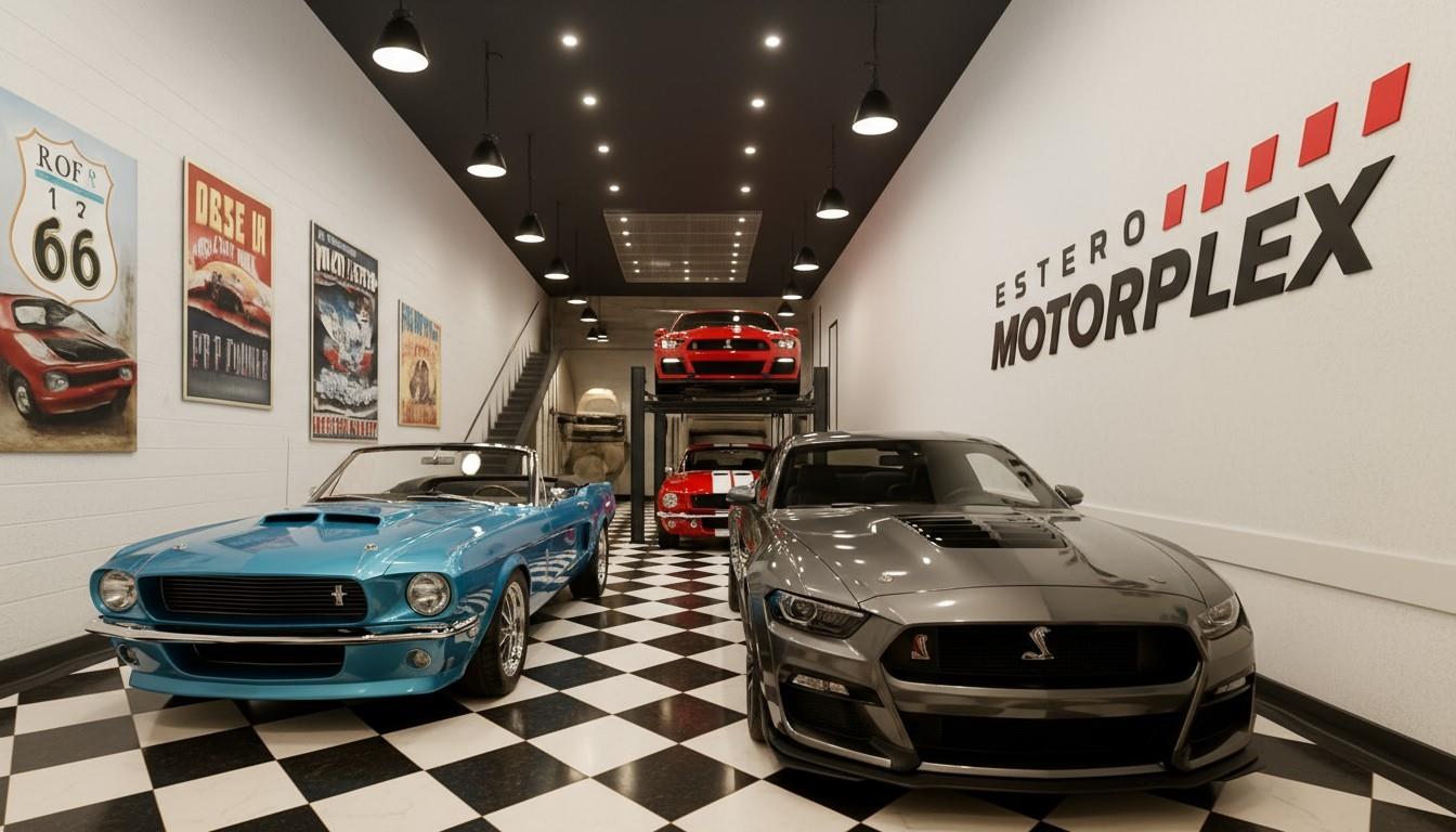 Introducing ESTERO MOTORPLEX, a luxury auto and motorcoach storage community located just West of I-75 on Estero Parkway, offering 40 units crafted with precision and passion. Each unit features full bathrooms, laundry hook-ups, mezzanines, and customizable space ranging from 1300 to over 2750 SF for your prized possessions. Elevating the standard of automotive luxury, ESTERO MOTORPLEX provides unmatched amenities like climate-controlled protection, washing and detailing areas, and 24/7 security and access. Designed for enthusiasts seeking excellence and convenience, this premier space fosters a social atmosphere where like-minded individuals can connect and enjoy the elite automotive lifestyle. Listing is for Unit E. 1463 SF. See Broker remarks.