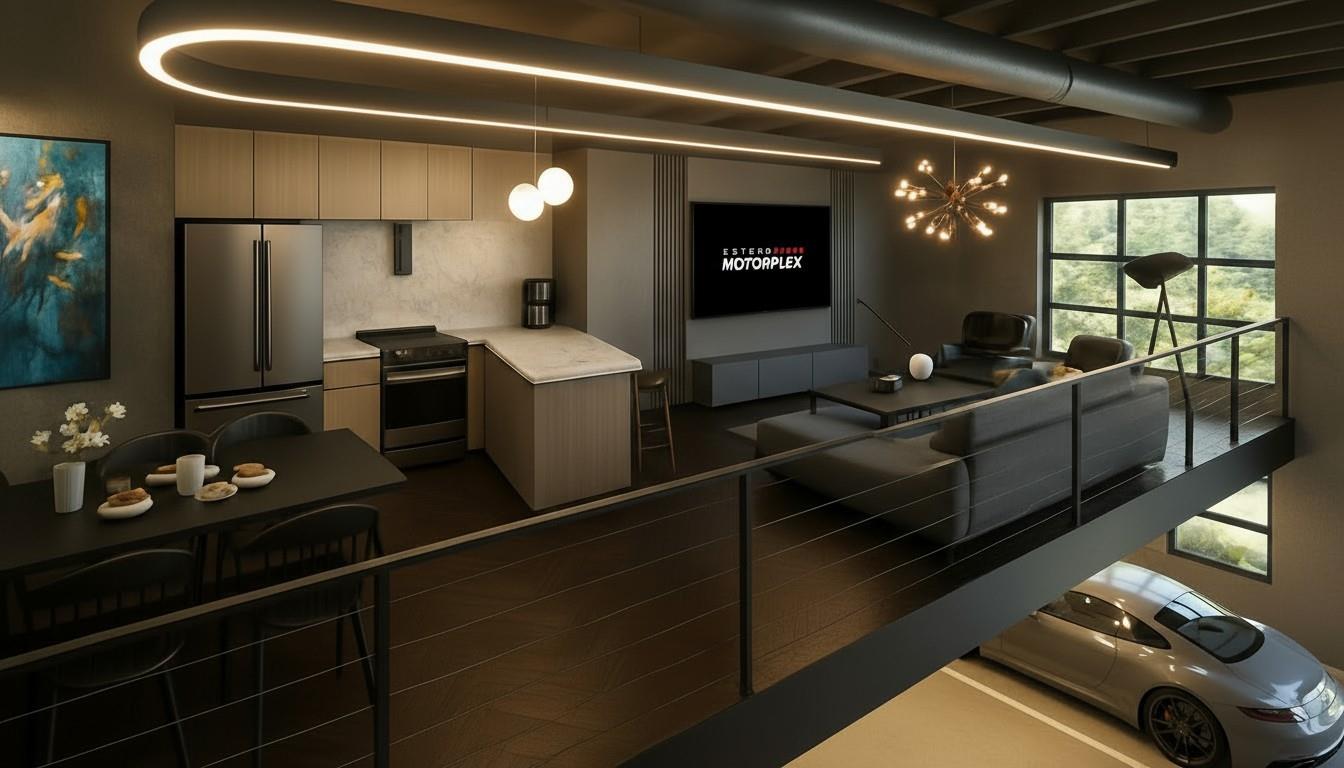 Introducing ESTERO MOTORPLEX, a luxury auto and motorcoach storage community located just West of I-75 on Estero Parkway, offering 40 units crafted with precision and passion. Each unit features full bathrooms, laundry hook-ups, mezzanines, and customizable space ranging from 1300 to over 2750 SF for your prized possessions. Elevating the standard of automotive luxury, ESTERO MOTORPLEX provides unmatched amenities like climate-controlled protection, washing and detailing areas, and 24/7 security and access. Designed for enthusiasts seeking excellence and convenience, this premier space fosters a social atmosphere where like-minded individuals can connect and enjoy the elite automotive lifestyle. Listing is for Unit B. 2013 SF. See Broker remarks.