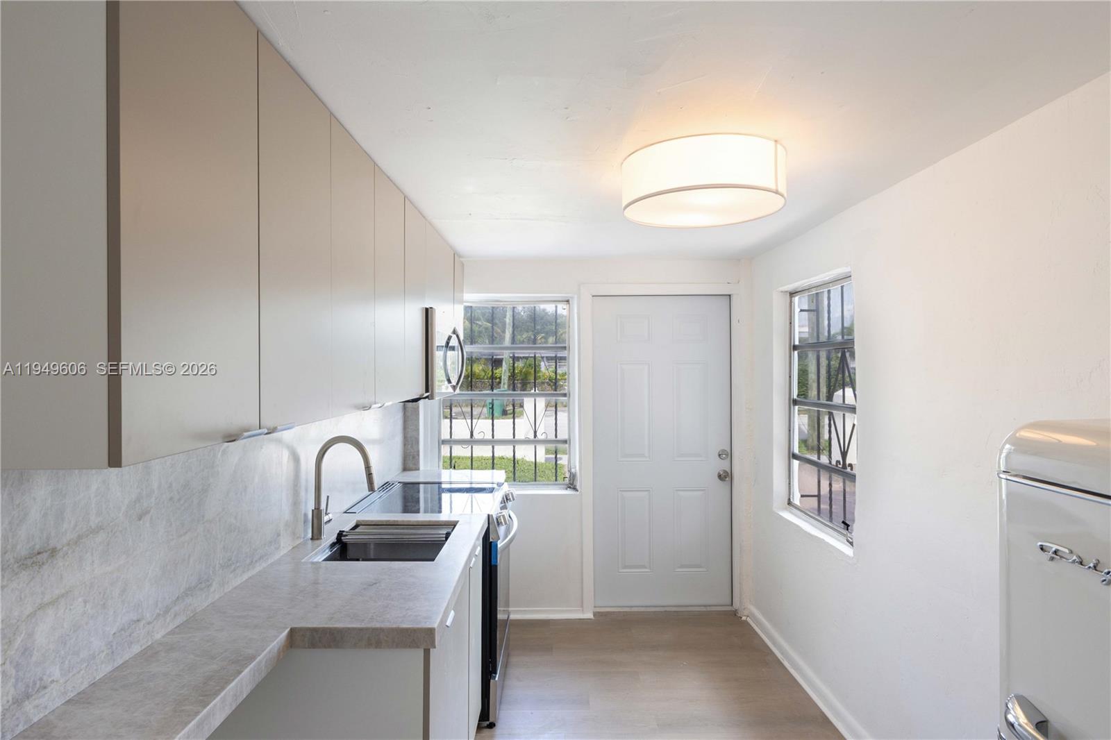 Well-located duplex offering flexibility and income potential, conveniently situated near I-95 for easy access throughout the city. The property features two separate units: a rented 2-bedroom/1-bath residence in the rear and a vacant 1-bedroom/1-bath unit in the front that has been fully remodeled. The back unit is rented for $2150, the front can command a rent of $1500. The front unit showcases wood-look vinyl flooring throughout, a contemporary kitchen with modern cabinetry and Taj Mahal countertops, new appliances, and a beautifully updated bathroom finished in stylish microcement for a spa-like feel. The renovation has never been lived in, providing a turnkey opportunity for an owner-occupant or tenant. Ideal for investors seeking rental income, owner-occupants looking to offset expenses, or buyers planning to lease both units. Strong layout, recent upgrades, and a convenient location make this property a compelling opportunity.