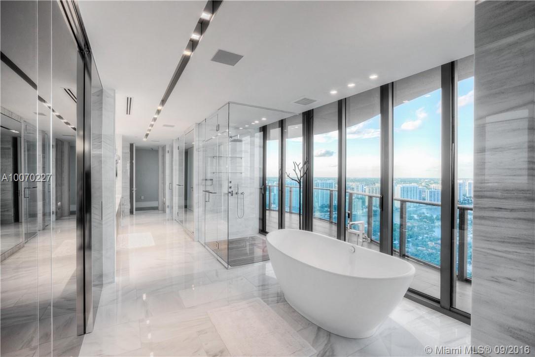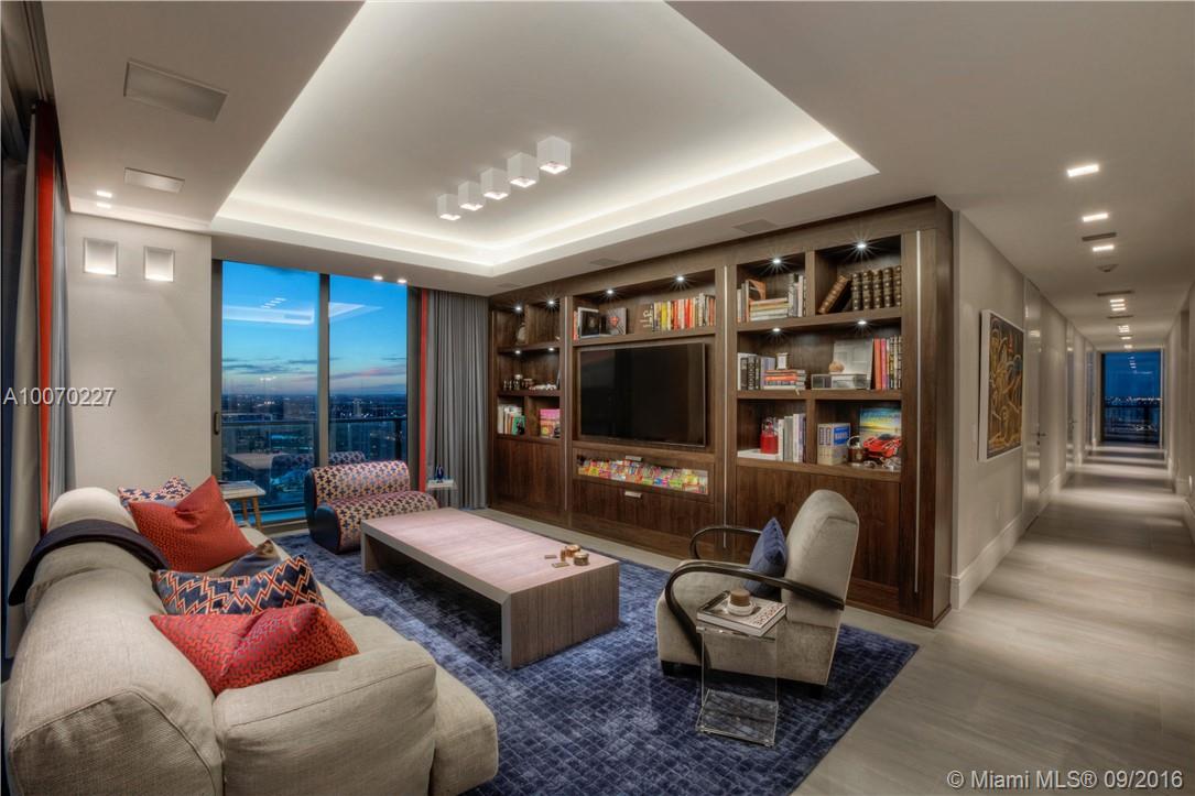 REDUCED FOR QUICK CLOSE-The highest available floor fully upgraded with 360 degrees of unobstructed views. 4 bd, 5.5 bth + family room/theater, 10ft high, floor to ceiling glass windows & custom Italian Interior Doors, Kreon lights throughout & recessed Ceiling Coves, Upgraded Crestron System includes sound, TVs, Automated Shades & Drapes. Sold upgraded but not furnished, except for installations.