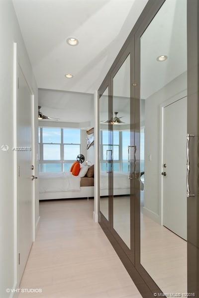 Absolutely Stunning Direct Ocean in exceptional low density complex. Floor plan has been architecturally customized;appointments are designer updated throughout.Ultra modern high end custom kitchen & baths. Miele appliances gorgeous bath & lighting fixtures.2nd & 3rd baths have stone & solid surface walls.Custom computer & TV desk area.Den w closet/wardrobe serves as 4th bedroom/media room.Intracoastal views from guest bedrooms.Great day/night views of park,ships and city. Easy Walk to Broadwalk & pier.