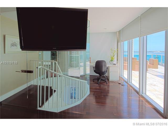 This 2669 SF loft is the largest in the building and has spacious 3 bed/3.5 bathrooms. Spectacular with 18' ceilings, impact glass provide light and a gorgeous view that will never be obstructed. Project a movie to the wall and enjoy the surround sound system. There are three levels and privacy, with two entrances from the 4th and 6th floors. Enjoy six terraces, over 1200 sf of breeze-filled outdoor area.