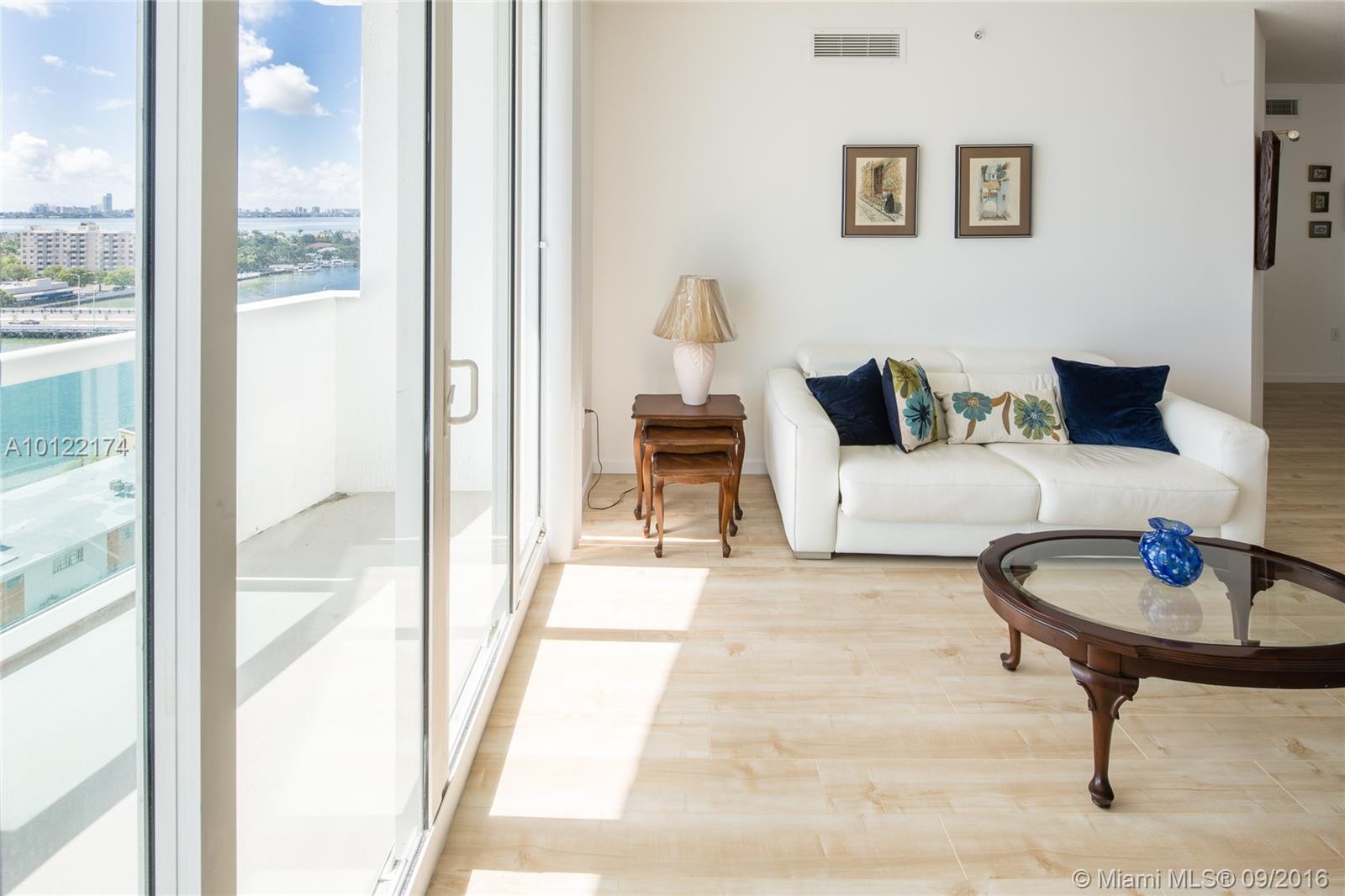 Unobstructed east views to the bay from this 2/2 condo @ 360 Condo, in excellent condition. No carpets, upgraded to wood floors. Balcony. Open kitchen. Walk-in closet in the master bedroom. Master bathroom with separate shower and tub. Ceiling fans. WD inside. Split floorplan. Full amenities : 2 pools, gym, spa, marina. 1 garage parking space assigned. 2nd parking through HOA $75. Only cats allowed, no dogs. Basic cable included.