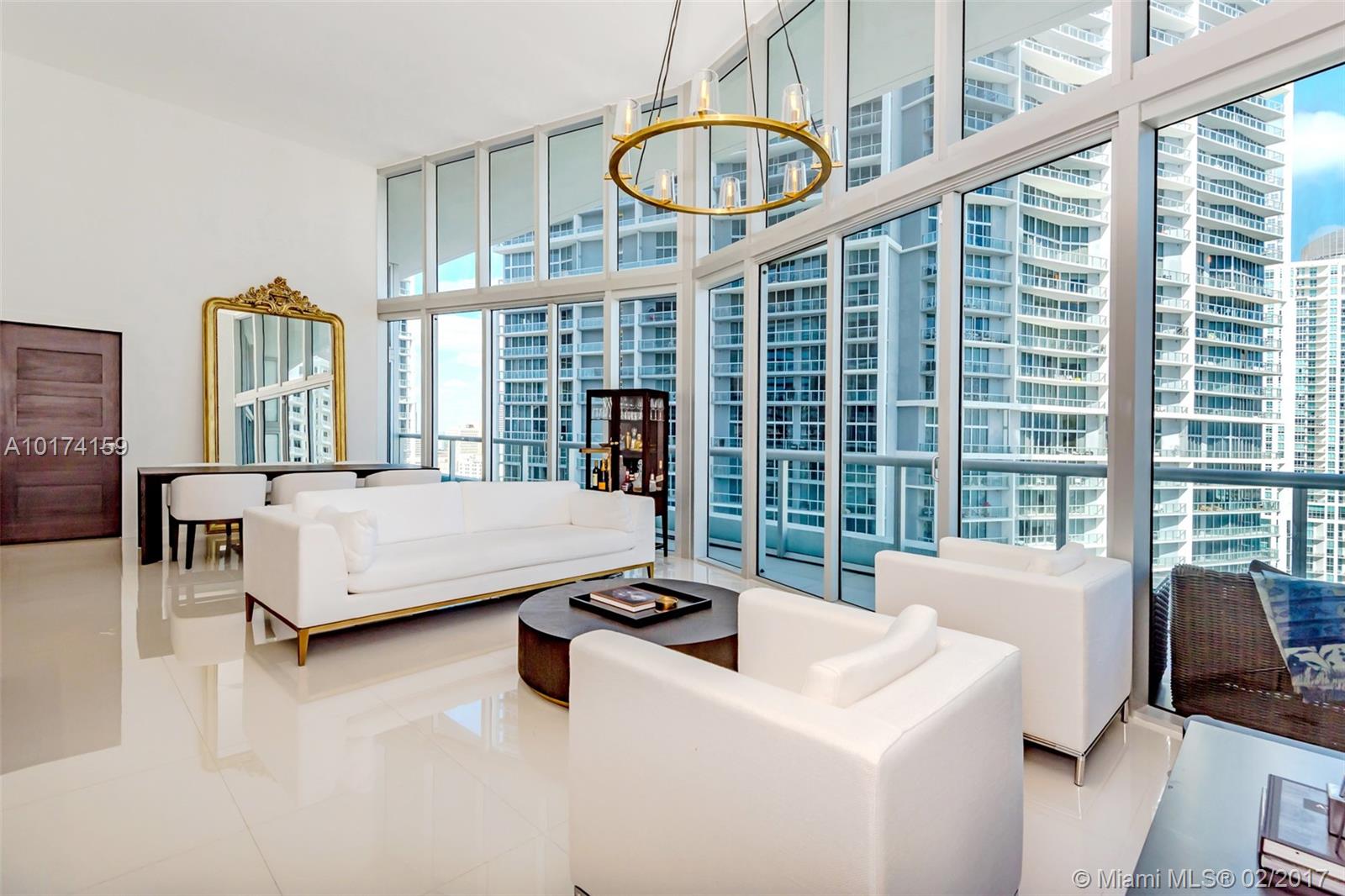 Spectacular 2/2 split unit w/breathtaking ocean, river & city views with 16ft high ceiling windows (Only floors 14, 15, 22, and 41 have high ceilings windows). Modern and sleek 24x24 white porcelain floors. Luxurious marble baths w/ over-sized Jacuzzi tub. Walk-in closets custom lined with wood. Extended travertine counter top, LED lighting. Top of the line appliances. Resort style living with state of the art, gym, spa. Five star restaurant Cipriani. **Special Assessment paid in full by owner*