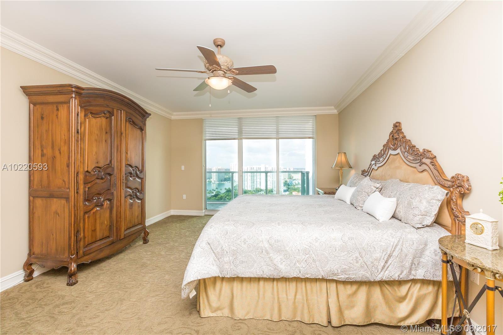 Gorgeous High floor flow thru luxury residence w/stunning direct views of bay, ocean & Sunny Isles skyline to the east & amazing unobstructed city views to the west from this 3 bedrooms, 3 baths, den/media room (easily converted into 4th bedroom), private elevator opening to formal foyer, crown moldings, marble floors, 2 balconies, Fully Upgraded gourmet Kitchen w/ granite counters, Stainless Steel ,subzero refrigerator & Wood Cabinets. Laundry room/Maids quarter. Great condition, used as a vacation home.