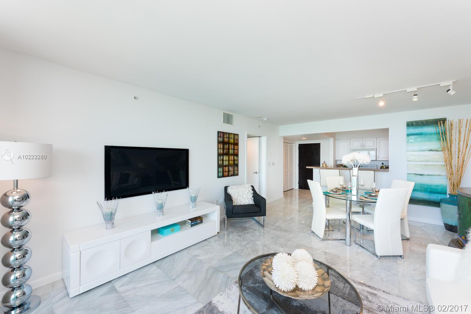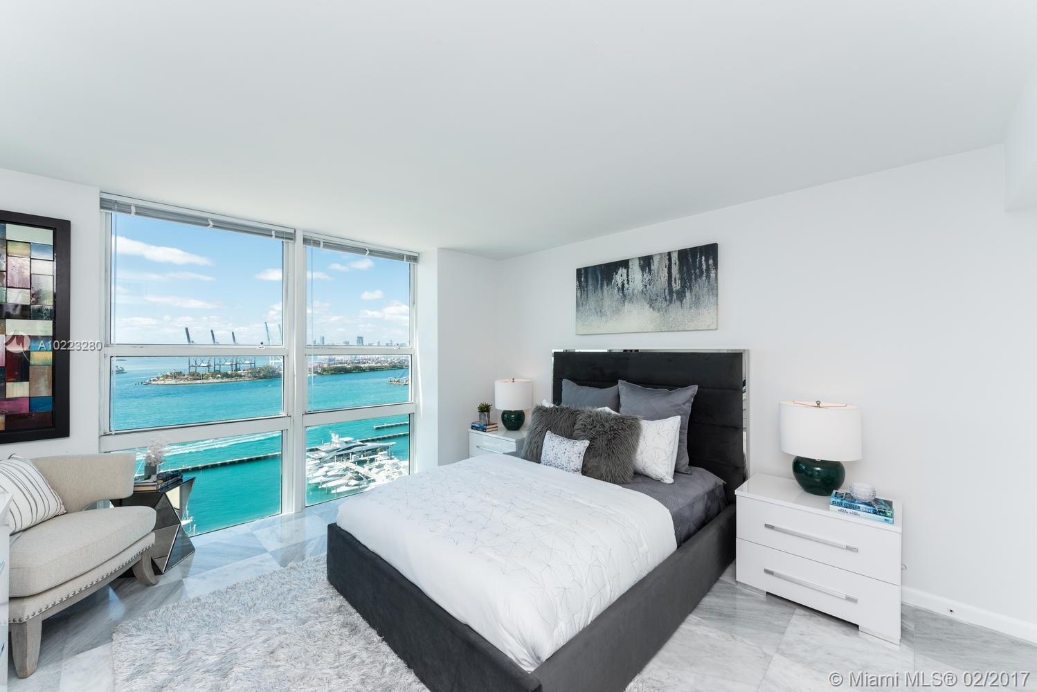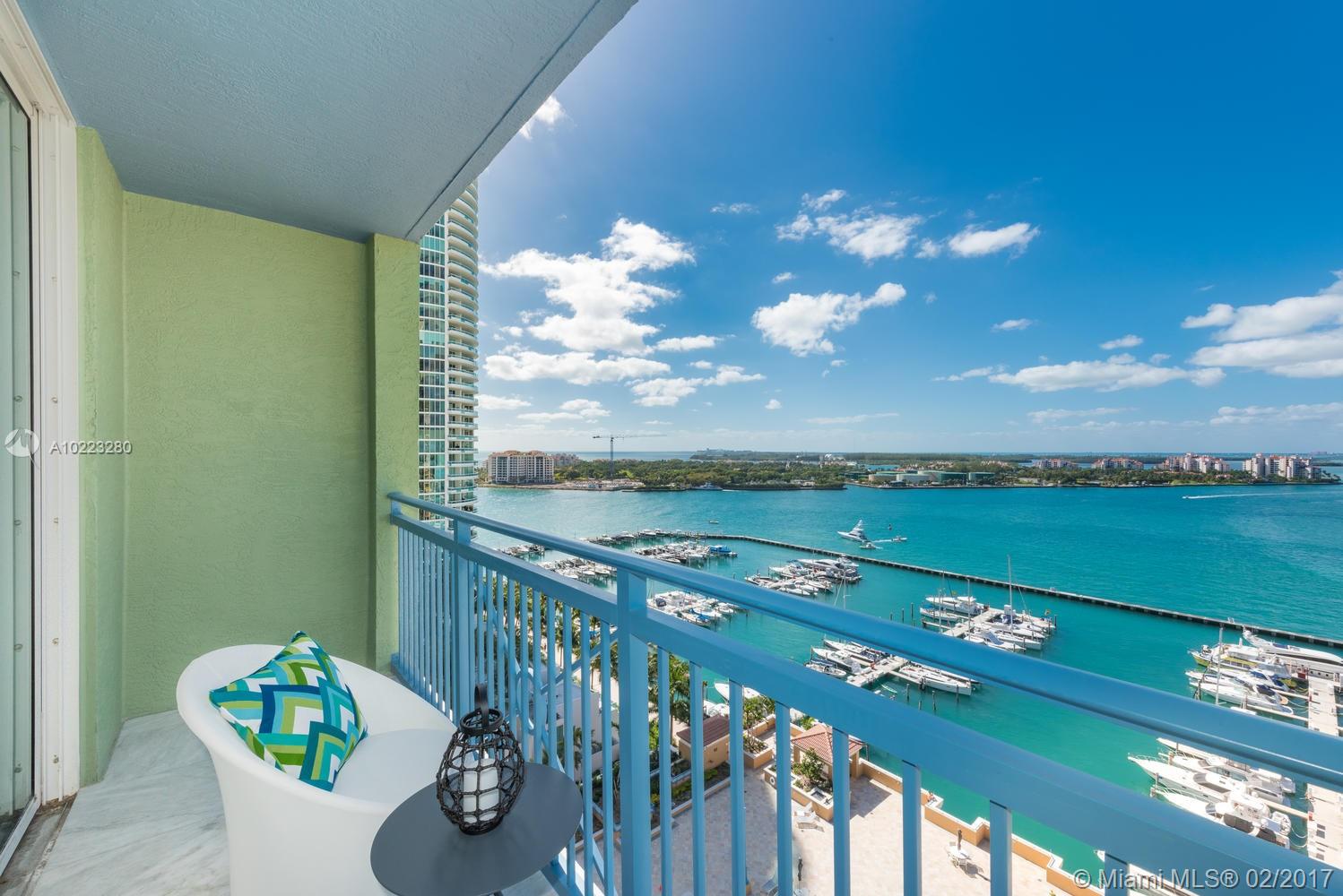 Great Investment opportunity. Perfect 1 bedroom with the best water views of the marina and government cut. This is a true gem, renovated and impeccably furnished and decorated. Marble floors throughout and window treatment installed. The unit can be rented short term for minimum 3 months with great returns.