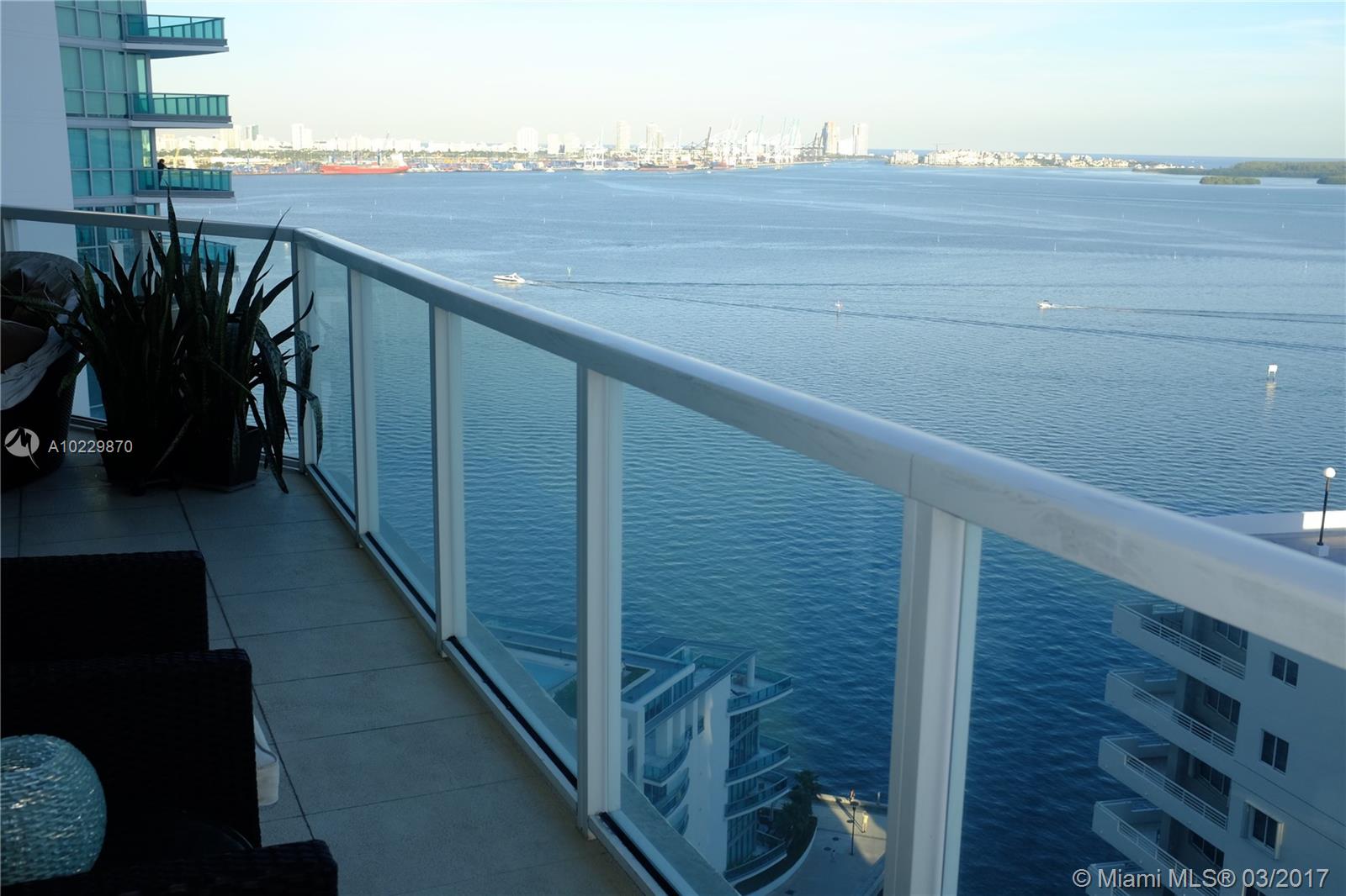 Biggest and best line in the building with panoramic bay views from deep spacious terrace great for entertaining. Kitchen with Italian cherry wood finishes and Sub-Zero appliances. Gorgeous White Porcelain floors throughout entire unit. Master walk-in closet, 9-foot ceilings with floor to ceiling glass in every room. $4000 sauna included inside condo unit. Resort-style amenities includes 24-hr security, concierge, rooftop infinity pool, state-of-the-art fitness center, sky club overlooking Biscayne Bay.