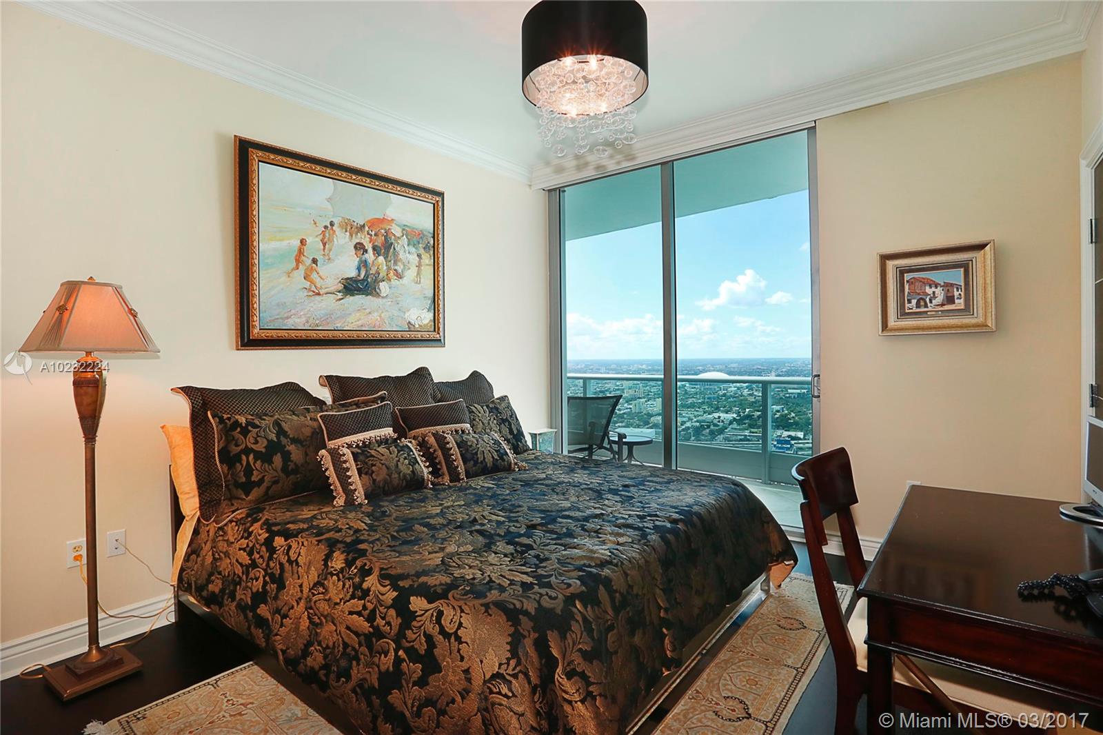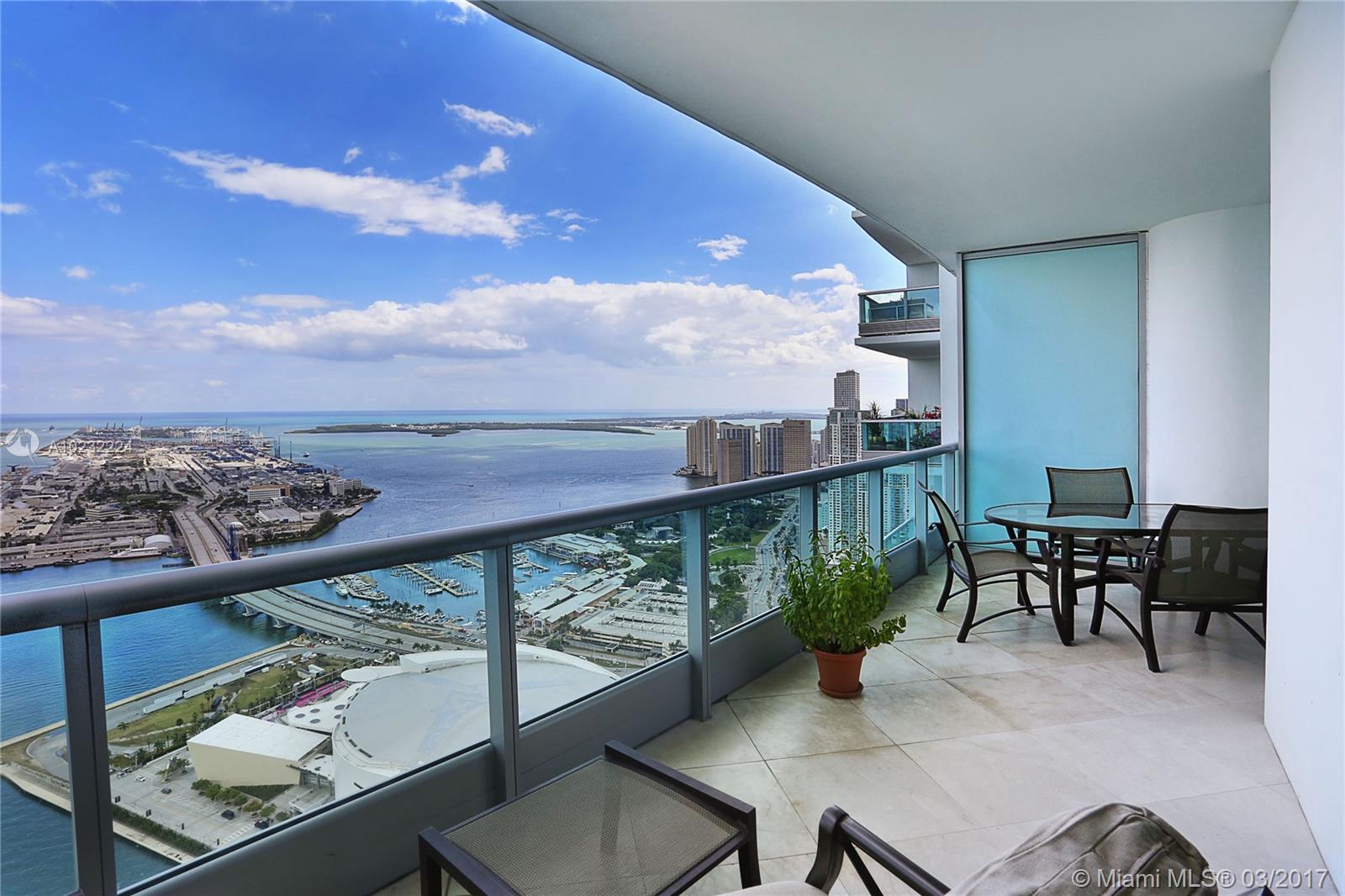 Elegant 3 bed/3.5 bath flow thru PH. Rare striking views of Ocean, Portmiami, Miami Beach and city from multiple oversized east and west private balconies. Kitchen features built in espresso station, ice machine and wine cooler. Granite surfaces in kitchen and bath with marble floors, custom Italian doors and warm wood flooring in bedrooms. Private elevator/foyer entrance. Master bath includes separate spa tub. Walk to Perez Art Museum, Museum Park, AA Arena, Arsht Center and easy access to highways.