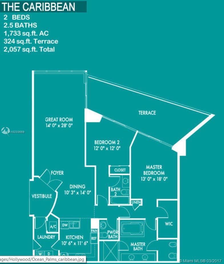 Best value anywhere on the ocean in Hollywood! Spacious 2 bedroom with nearly 1,750sf of interior space, phenomenal ocean views, finished with marble flooring, Italian kitchen with top-of-the-line-appliances, and lavish marble bathrooms. Ocean Palms is a premier, luxury ocean-front building with state-of-the-art amenities that include a private tennis court, on-location restaurant, fully serviced pool and beach pavilion, and spa and fitness facilities.
