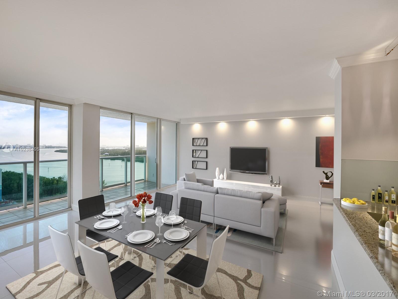 Experience the MILLION DOLLAR VIEW of the Atlantic Ocean and Biscayne Bay from the moment you walk in. All the stresses of your daily life are instantly gone. This home is nothing but spectacular! The modern kitchen, large master bedroom, 250-foot square foot balcony, floor to ceiling impact resistant windows, the high floor, and the thirty-two inch porcelain white tile are just a few of the reasons you will fall in love with your new home.