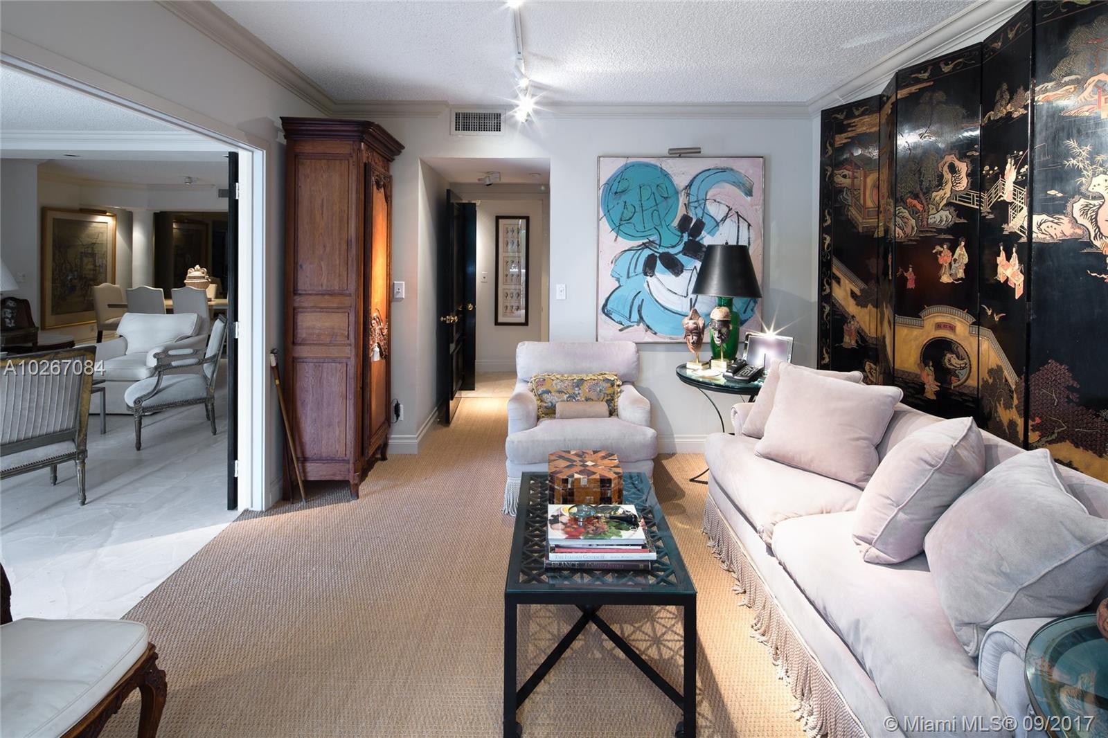 SOME FURNITURE INCLUDED. INVENTORY LIST TO BE PROVIDED. STARTING 02/01/2019 THERE WILL BE A MONTHLY SPECIAL ASSESSMENT FOR 84 MONTHS OF $345.26 FOR NEW GLASS BALCONIES AND FRONT ENTRANCE WAY. THIS OUTSTANDING WILLIAMS ISLAND, UNIQUE SPLIT 2/2 RESIDENCE FEATURES CUSTOM SLABS OF INDIANA HONED LIMESTONE FLOORS IN THE LR, DR, KITCHEN, HALLWAYS AND THE ENTIRE TERRACE. CUSTOM MILL-WORK THROUGHOUT, INCLUDING COLUMNS IN THE LR AND DR AREAS. 2ND BEDROOM/STUDY WITH CUSTOM DOUBLE DOORS. RESIDENCE IS ALSO WIRED FOR SOUND IN THE LR AND 2ND BEDROOM. BOTH BATHROOMS HAVE ALL THE WALLS COVERED WITH MARBLE.