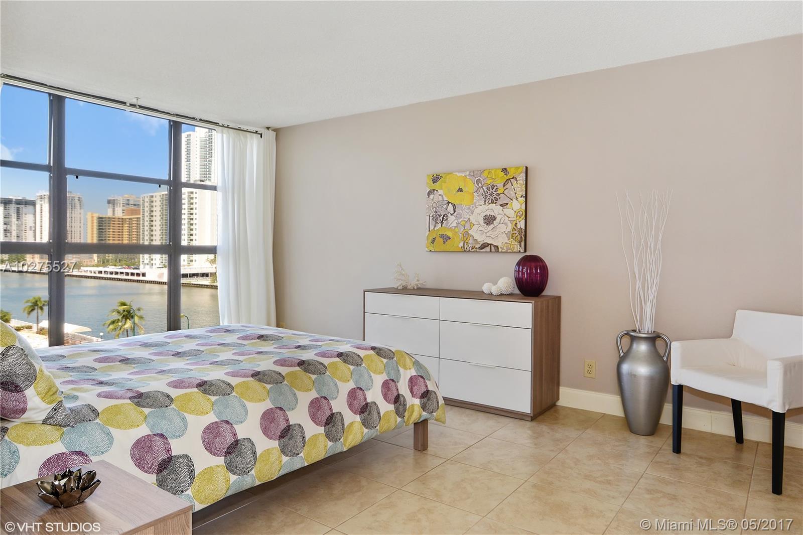 Florida living, magnificent direct view on intracoastal from every room; constant boat parade. Stylish & pristine 2/2 remodeled condo, featuring a newer custom opened kitchen with granite, new cabinets, ss appliances, recessed lighting, built in wine cooler, eating counter/bar. Spacious master suite with large walk in closet. Bathrooms upgraded as well. Beautifully tiled throughout. Bright unit with floor to ceiling windows. Sold partially furnished. Elegant, 24hrs secured bldg including Gym, Tennis, Billiard, Pool, Clubhouse and more. Great location, minutes to Beaches, Shopping, Casino, Restaurants. All age bldg with a 2 year rental restriction. Easy to show. Pictures is truthful to the immaculate condition of this residence. Parking for this unit is totally covered, rarely available.