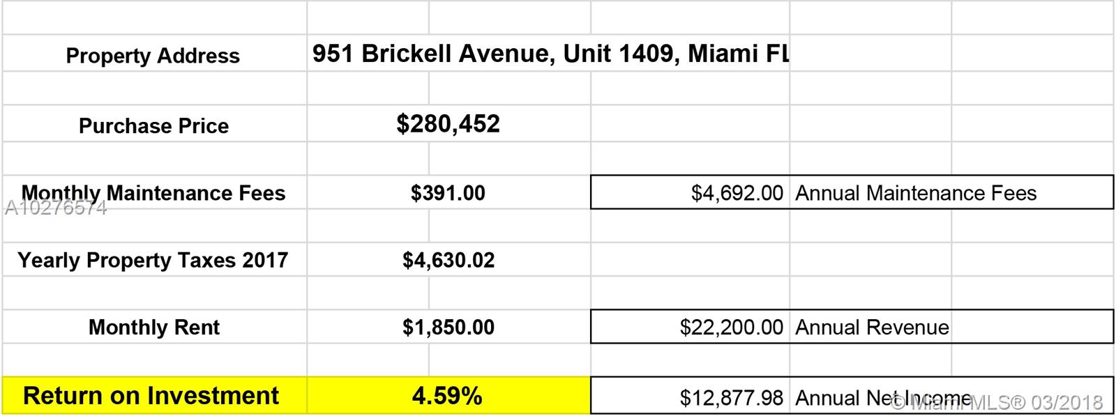 951 Brickell Ave, Unit 1409, Miami, FL 33131