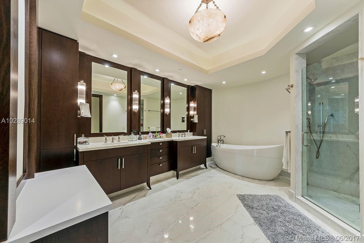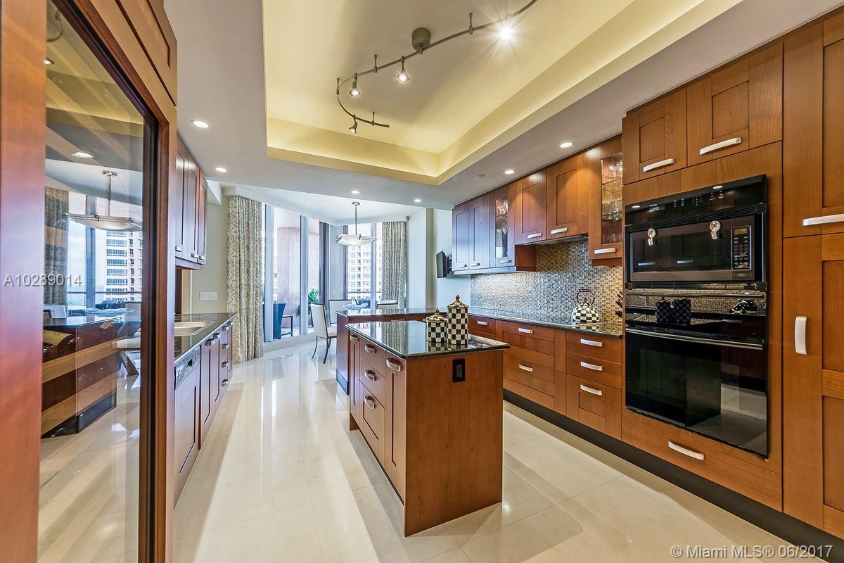 With over 700 sf of balcony space, enjoy stunning water and city views from this beautifully remodeled unit in the luxurious Gables Club. Floor-to-ceiling windows and sliding glass doors allow natural light to fill the home while showcasing the bay and city views. The unit features a gorgeous gourmet kitchen with top-of-the-line appliances and finishes. All bedrooms have gorgeous views and remodeled en suite bathrooms. Third bedroom is currently used as an office and has custom built-in bookcases, shelving and a desk. Marble floors and custom doors are used throughout along with tray ceilings with hidden light details. The master suite has a large walk-in closet with built-ins and balcony with expansive water views. Building amenities include a heated pool, tennis court, clubroom and more.