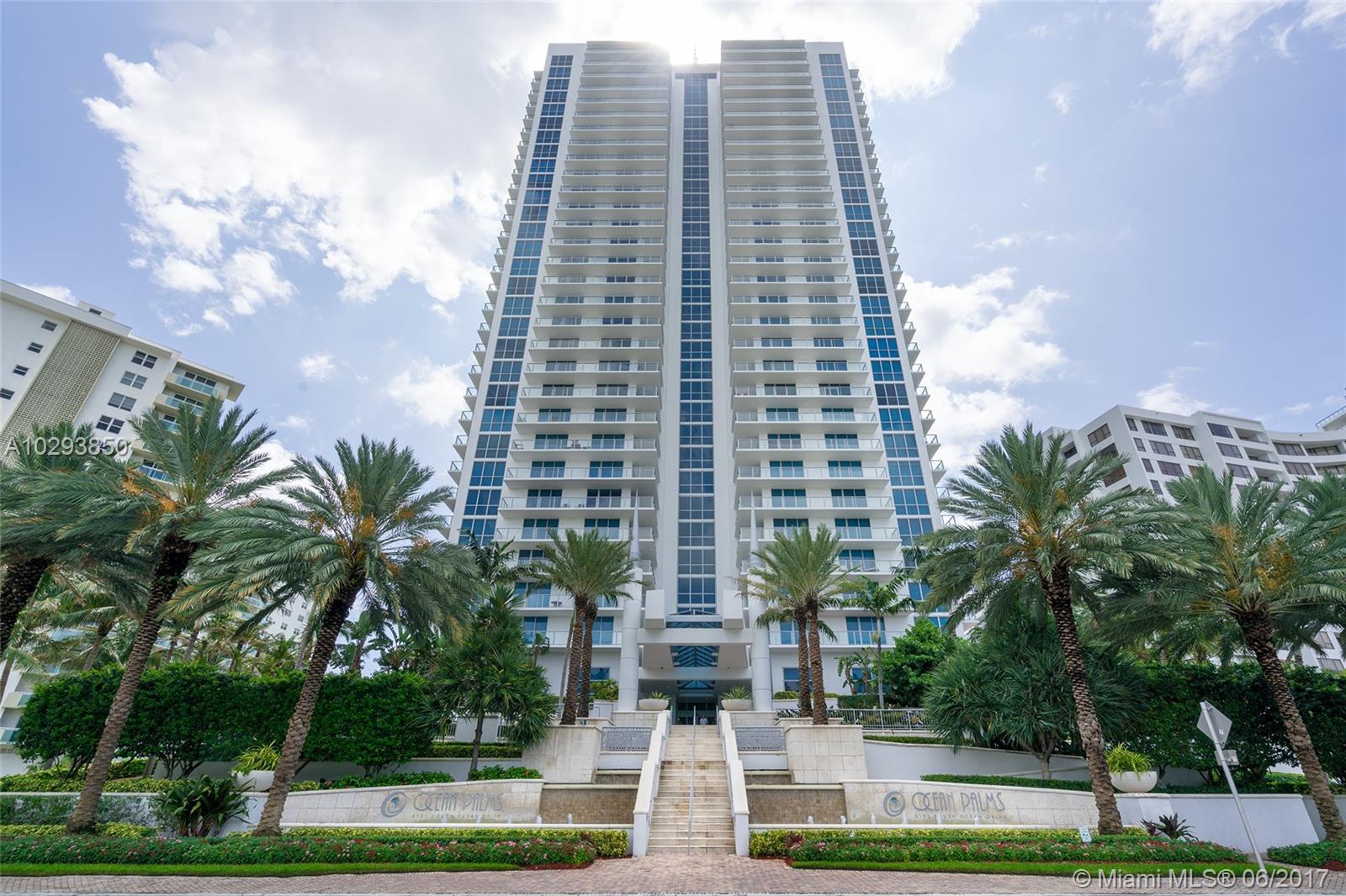 BEST PRICE OCEAN PALMS CONDO!!! Beautiful unit with private elevators open to a luxurious foyer. Double doors lead your eyes to 180 degree Ocean and Intracoastal views. Marble floor,Italian Cabinetry with granite counter tops, Jacuzzi in Master Bedroom, Washer and Dryer Inside. Hurricane impact windows. Assigned and Cover Parking Space. Pet Friendly building, Concierge service, Pool and Beach Attendance, Beach Chairs,2 story Gym,Billiard,Tennis court.