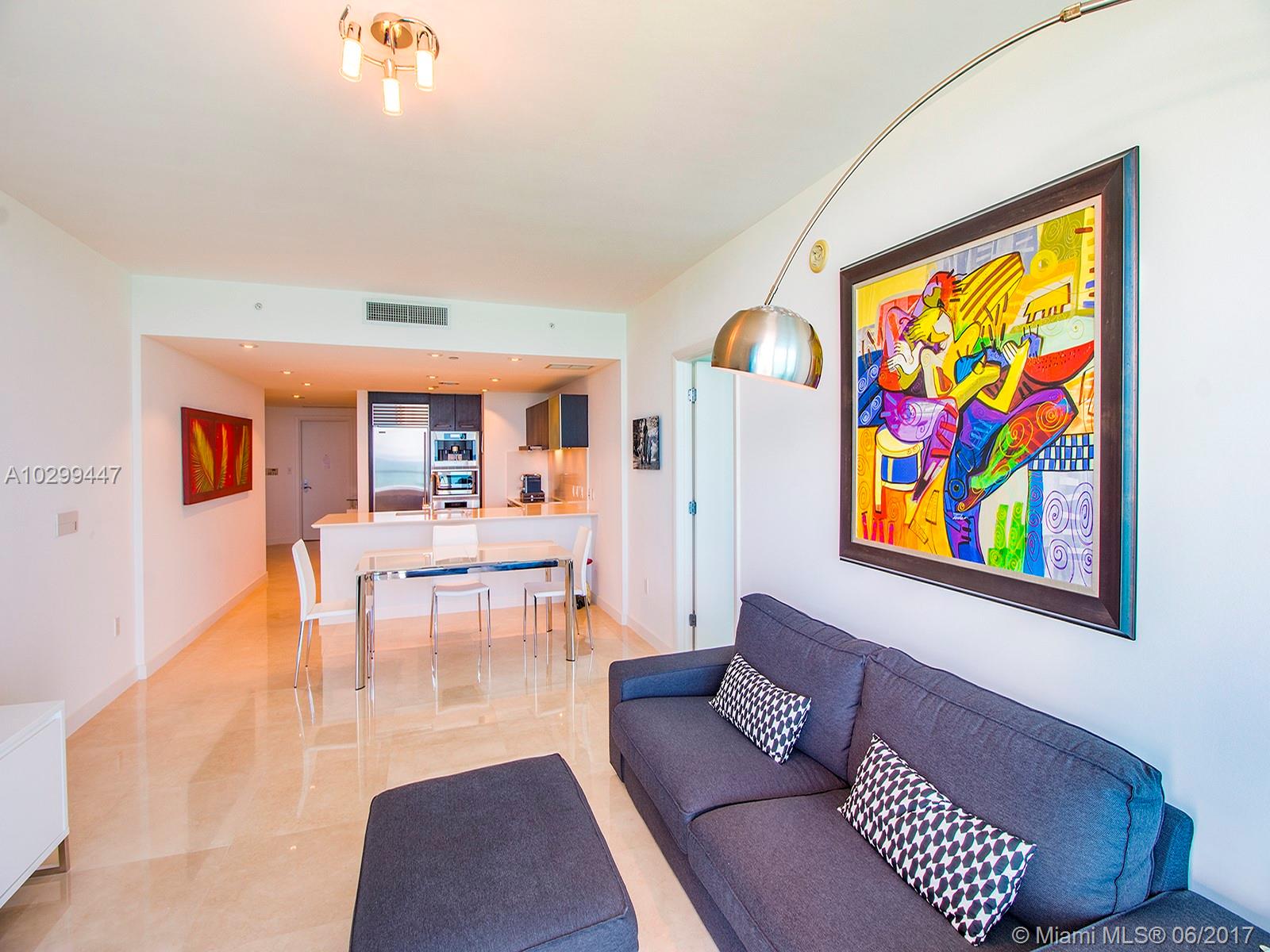 Designer turnkey 1 Bed/2 Bath plus Den at beautiful Jade Beach in Sunny Isles. Take the private entry foyer into direct ocean views from everywhere. Pristine marble floors and high-end finishes make this modern condo a must see. All furniture is included. Incredible amenities including full service spa, fitness, pristine beach, dedicated concierge, smart pad in the condo, pools and childrens room. Close to world-class shopping and dining in Bal Harbour, Aventura, Miami and Miami Beach.