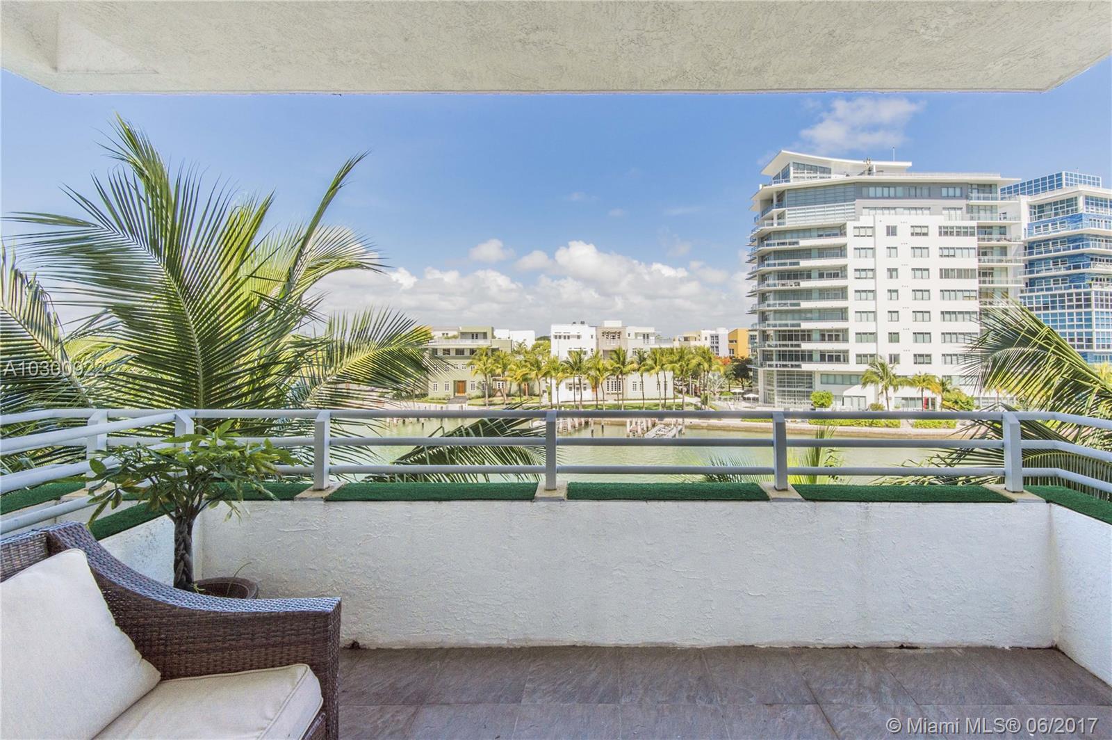 Spacious 2 bedroom + den waterfront condo, with water views from both bedrooms, living room and kitchen. Iconic Miami sunset views over the downtown skyline. Located just across from the beach and prestigious Millionaire's Row. Hardwood floors throughout, high ceilings, and Euro kitchen. Quiet boutique building walkable to dining and Publix, and moments from Bal Harbour Shops. Dockage available directly behind building. Pool, Gym and Sauna.Video cameras on location!