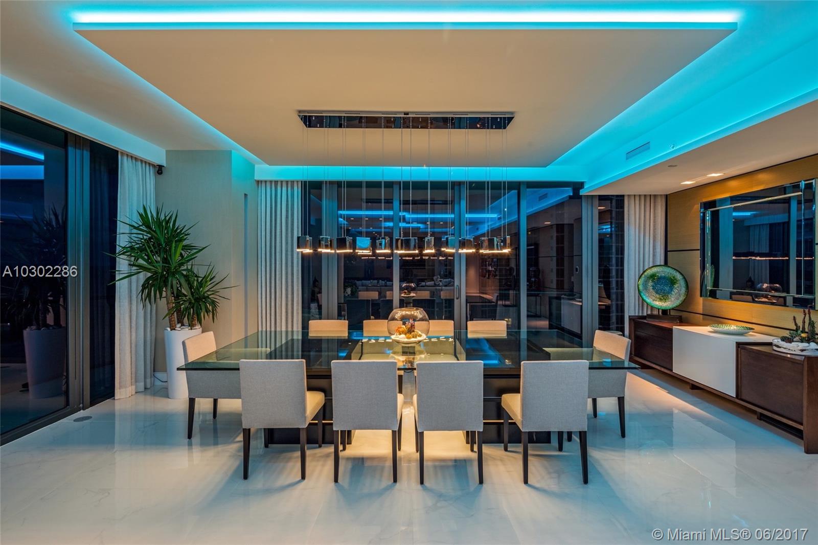 Exclusive Steven G designed full floor residence with 360 degree views. This custom residence features a private elevator, custom LED ambient lighting, smart home technology, movie theatre projector, 4 Bedrooms with maid quarters and 5.5 Bathrooms. 5,515 interior SqFt and 2,100 SqFt of wraparound terraces totaling over 7,600 SqFt. Building amenities include full service beach /pool service, private wine cellars, business center, state of the art gym/spa facilities and much more!