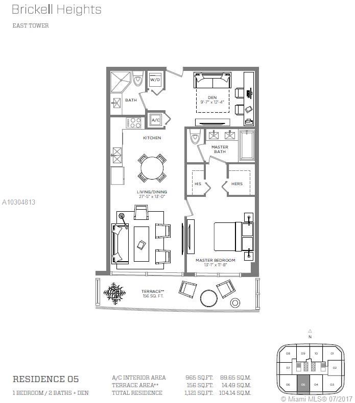 Largest Floor Plan and Least Expensive 1 Bed + Den / 2 Full-Bath unit fully upgraded in the east tower at Brickell Heights with expansive terrace overlooking Mary Brickell Village with partial water views. 965 SF of interior space with wood-grained porcelain flooring, floor-to-ceiling sliding glass doors, custom ItalKraft kitchen, modern bathrooms, in-unit washer/dryer & upgraded closets. Resort-style amenities include Equinox Fitness Club & Spa, Soul Cycle, rooftop pool, 9th floor pool deck with swimming/lap pools, urban garden, 2 club rooms, kid's room, business center, theater room & 24-hr concierge/valet services. Ideally located in the heart of Brickell just steps from Brickell City Centre & minutes from Downtown, Miami Beach, Wynwood & Midtown.