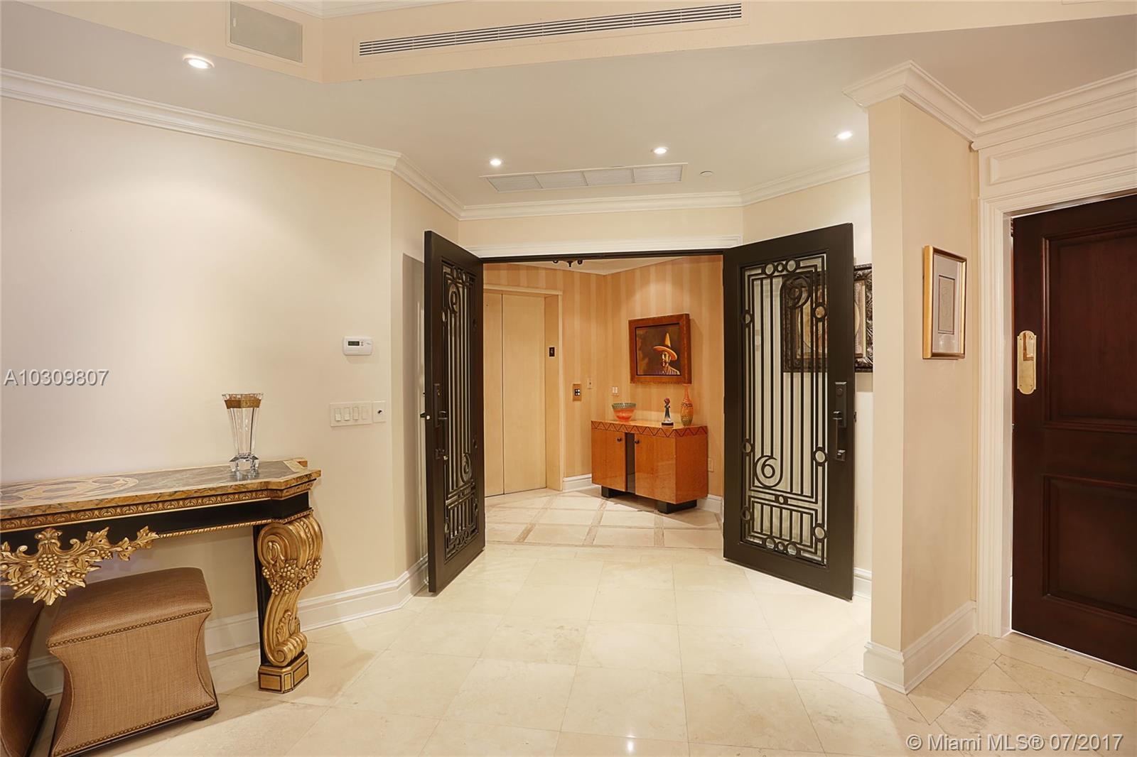 Fabulous unit at The Gables Club. Enter through your private elevator foyer into a refined and well-designed space featuring a formal living and dining room, spacious eat in kitchen, elegant master suite with marble bath and handsome library/den which was converted from the 3rd bedroom. Custom millwork, 10ft ceilings, marble and wood floors and separate laundry room complete this offering. The Gables Club offers 24/7 security and valet, lighted tennis courts, private marina, restaurant, spa and gym.