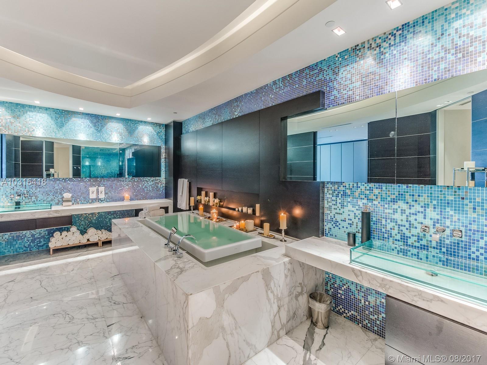 The ONE unit that has it all. Contemporary custom designed lower PH in Palazzo Del Mare by renowned designer Pepe Calderin boasts dramatic double door foyer, water fall entry feature & top of the line finishes throughout. Offered fully furnished “As Is” w/ rich Italian leather modern décor & wood/glass tables. Rare six (6) BR sprawling unit claims sweeping unobstructed views of Gov’t Cut, South Beach & the Atlantic Ocean from the moment one enters, this property is ideal for family living & entertaining. The sophisticated Master Spa Bath offers the ultimate luxurious experience w/ its oversized infinity whirlpool tub as the focal point & separate glass shower w/ deep ocean-blue glass tiles. Modern gourmet Kitchen w/ Miele appliances is wrapped in ‘’Calacatta’’ marble.