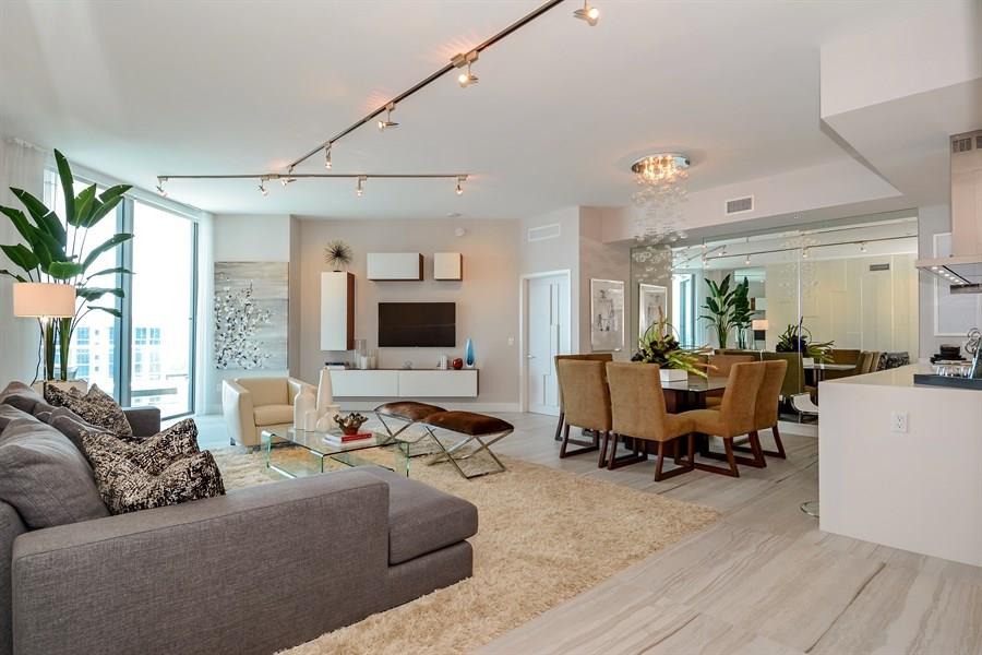 MOTIVATED SELLER never occupied, Steven G design makes this model water front penthouse is a boater's and activity seekers dream. Marina and city living at its finest - Steps from ocean, fine dinning and shopping. Features 2 gorgeous bedrooms / bathrooms with custom cabinetry, flooring and FULLY furnished contemporary sky top sanctuary. Top floor Penthouse with unobstructed views to Miami and the beach. Optional 67'x21' BEST LOCATION boat slip available. 2 parking bays and valet.